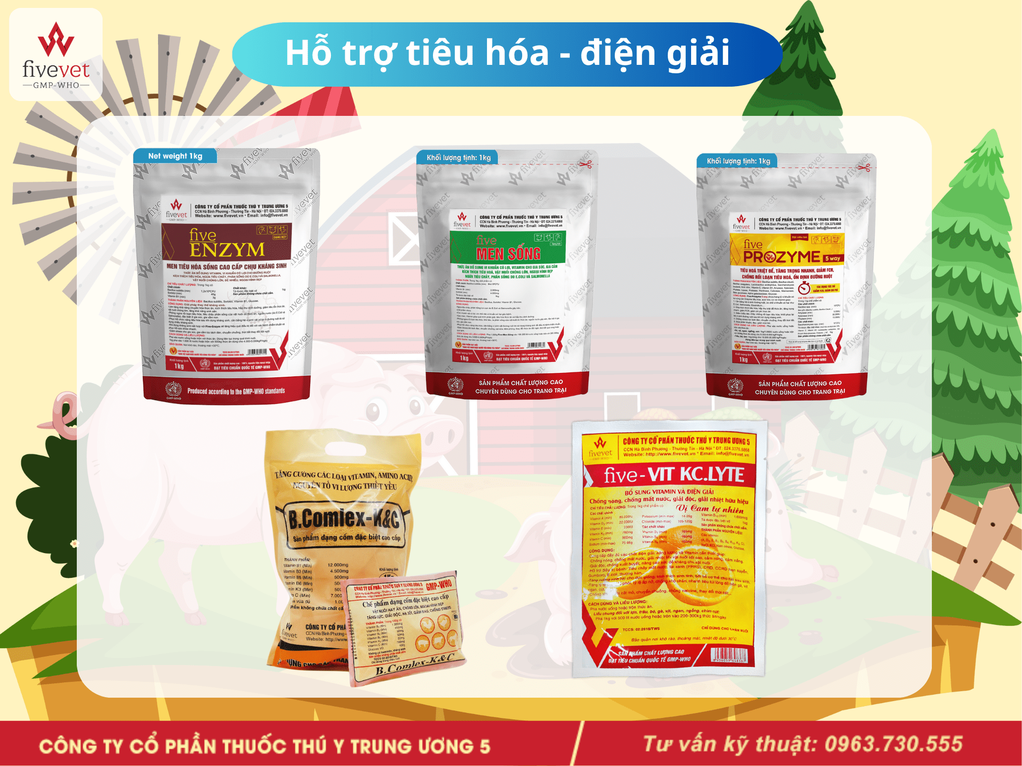 - Bổ sung các chất điện giải, kích thích tiêu hóa cho lợn như: