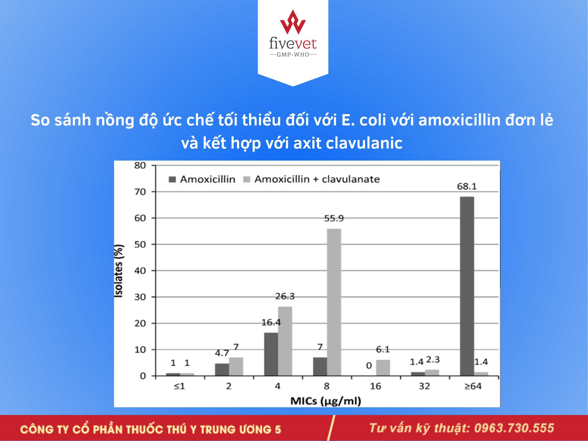 So sánh nồng độ ức chế tối thiểu (MIC) đối với E. coli với amoxicillin đơn lẻ và kết hợp với axit clavulanic (Marion & Siegwart, 2015 )