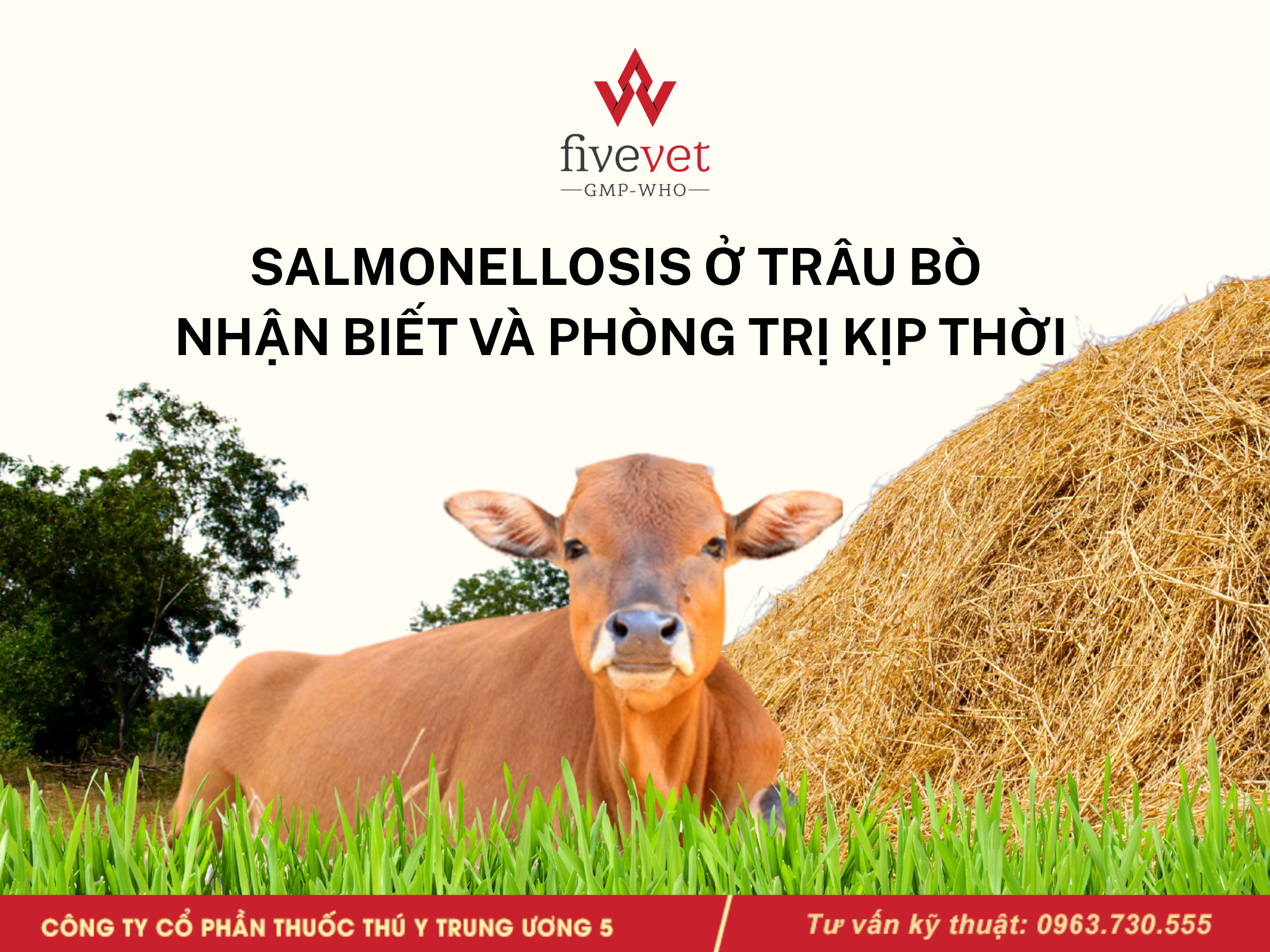 Fivevet xin chia sẻ các kiến thức về dịch tễ, triệu chứng và hướng điều trị bệnh Salmonella ở trâu bò, đặc biệt nhấn mạnh vào tầm quan trọng của vệ sinh chuồng trại, chẩn đoán sớm và điều trị kịp thời. Ngoài ra, bài viết cũng cung cấp một số khuyến nghị về sản phẩm sát trùng, thuốc điều trị và hỗ trợ điện giải, giúp người chăn nuôi chủ động phòng chống và kiểm soát dịch bệnh hiệu quả hơn.