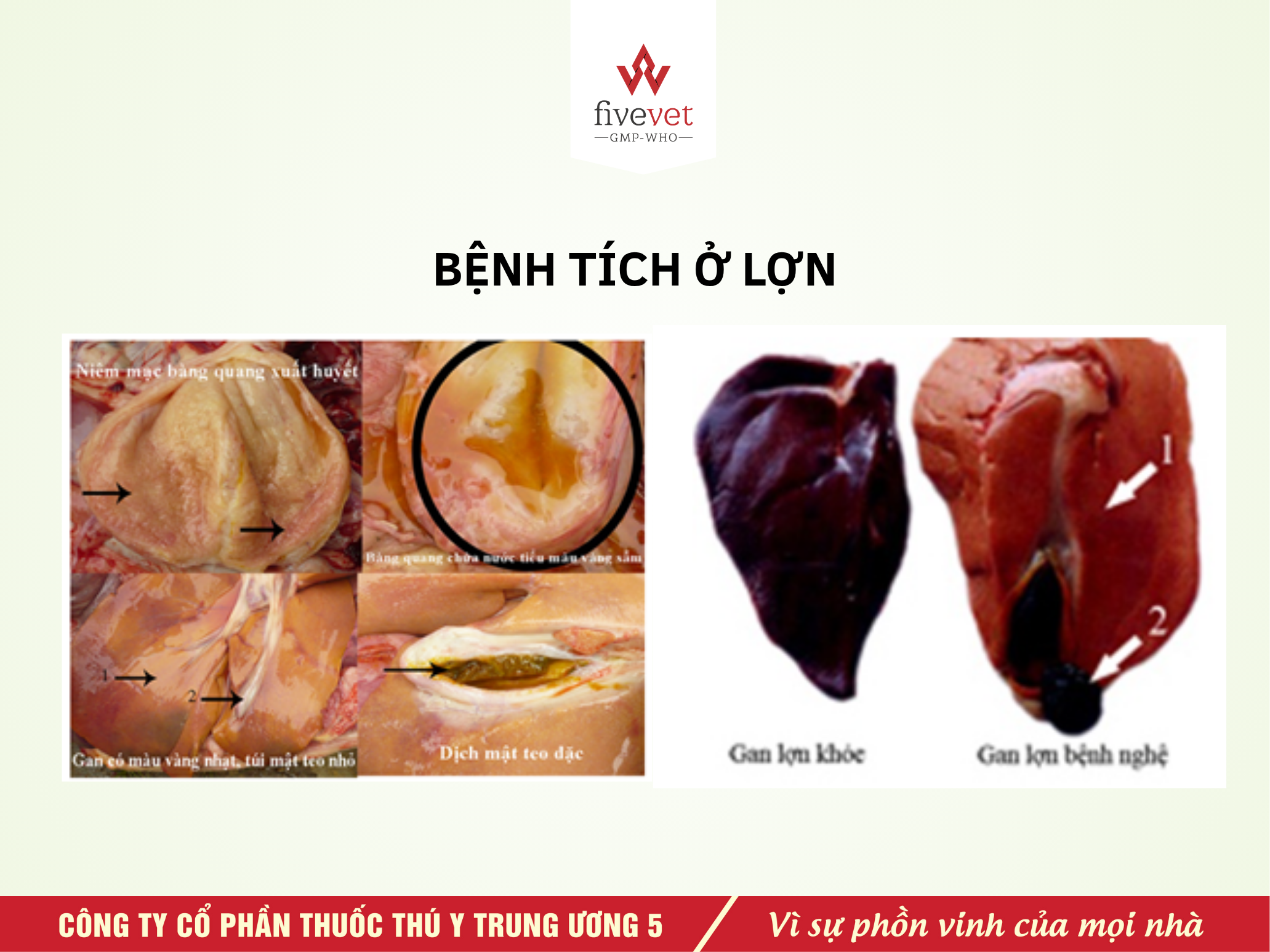 oC), bỏ ăn, nước tiểu có máu, khó thở do sung huyết ở phổi, có chứng hoàn đản thiếu máu, suy kiệt dần rồi chết. Nước tiểu màu vàng, từ vàng nhạt đến vàng thẫm hoặc màu đỏ do các huyết sắc tố.