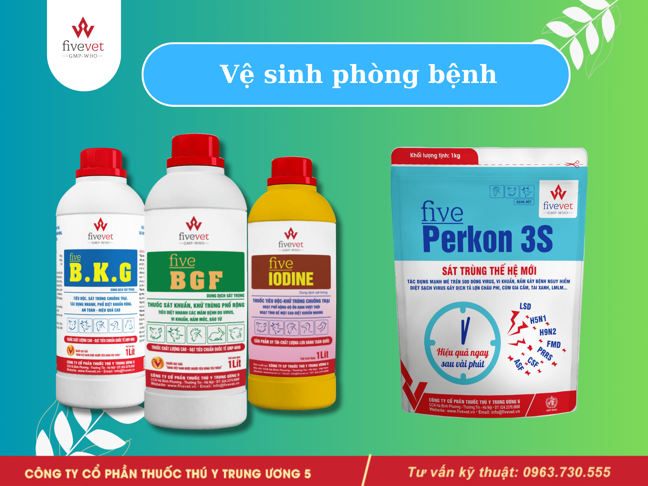 -Vệ sinh phòng bệnh: Vệ sinh chuồng trại, dụng cụ chăn nuôi thường xuyên, phun sát trùng định kỳ bằng các sản phẩm: