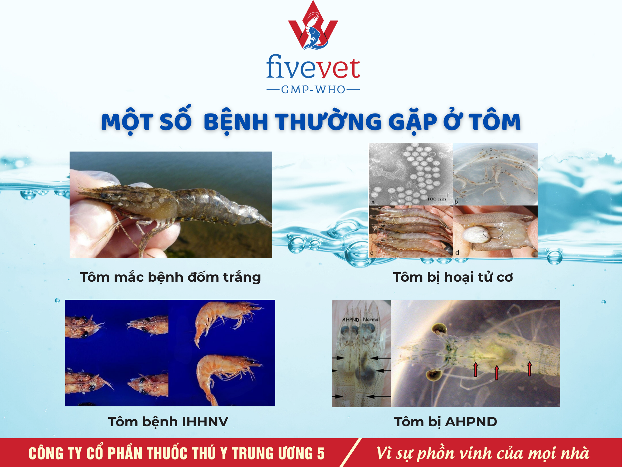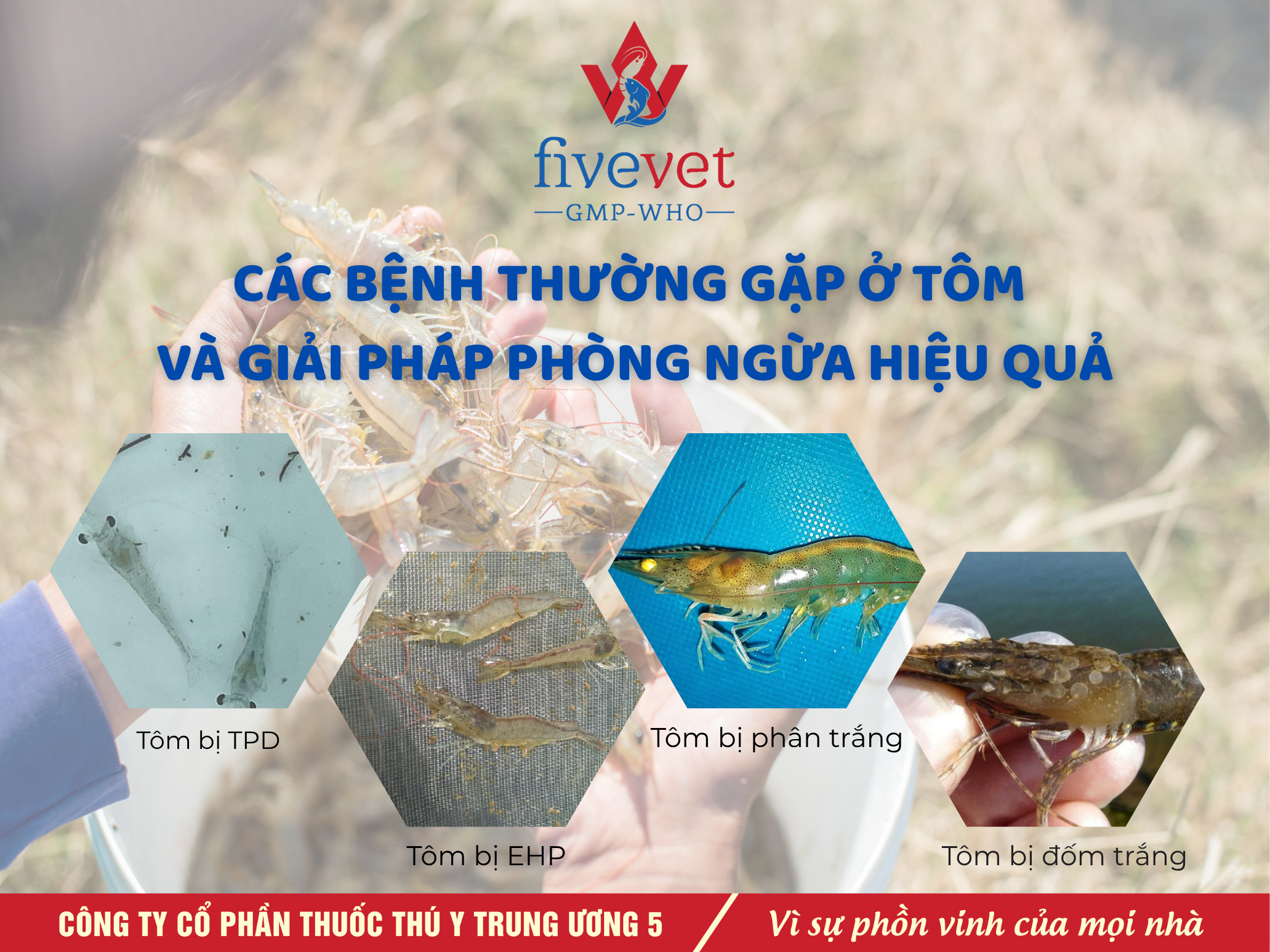 Trong bài viết này, FiveAqua (Fivevet for Aqua) sẽ cùng bạn tìm hiểu những bệnh thường gặp ở tôm, nguyên nhân, dấu hiệu và các giải pháp phòng ngừa hiệu quả, giúp người nuôi chủ động kiểm soát dịch bệnh và nâng cao hiệu quả nuôi trồng.
