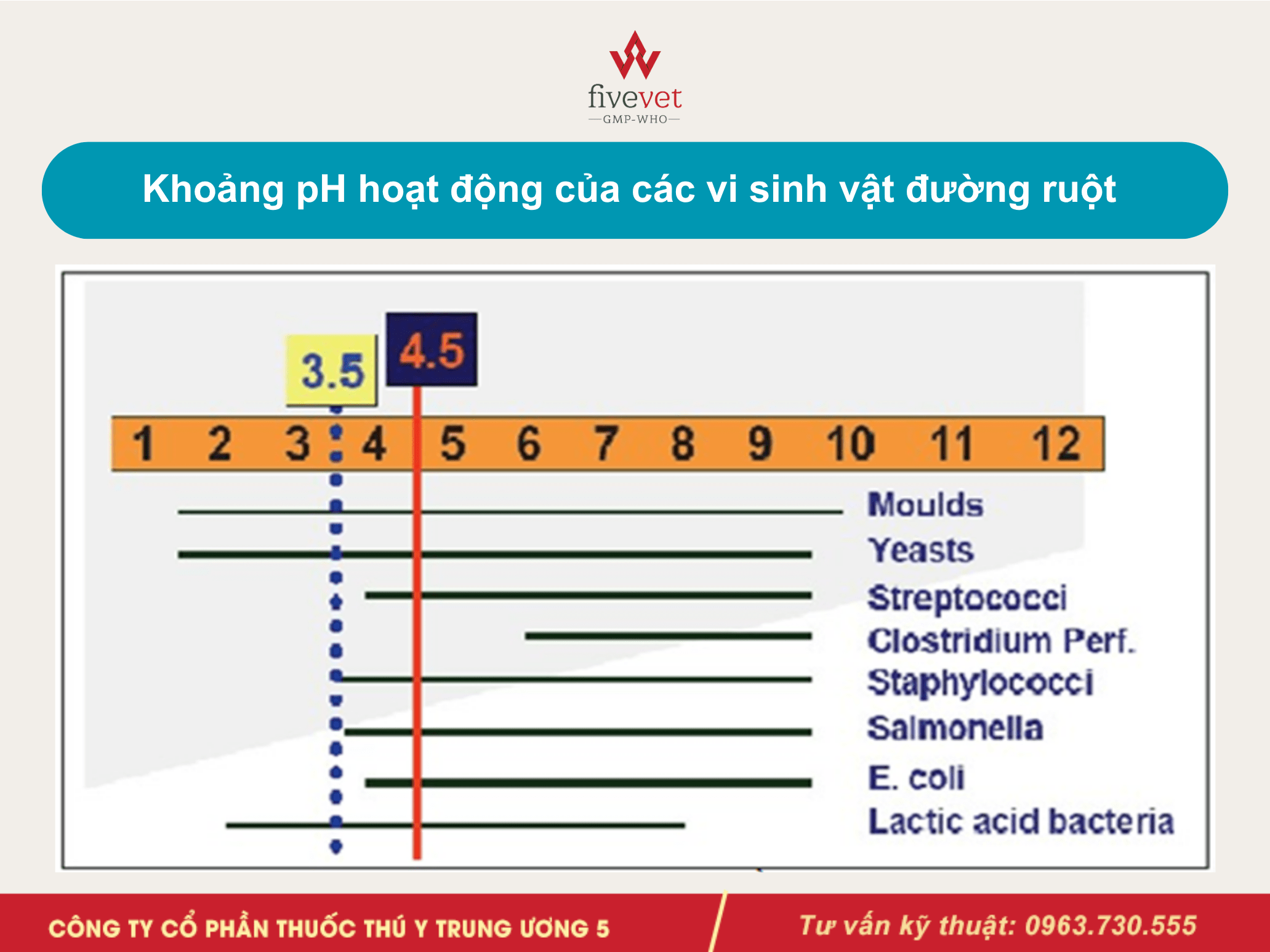Hầu hết các vi khuẩn gây bệnh sẽ không có khả năng phát triển hoặc bị tiêu diệt khi pH đường ruột thấp <3.5.