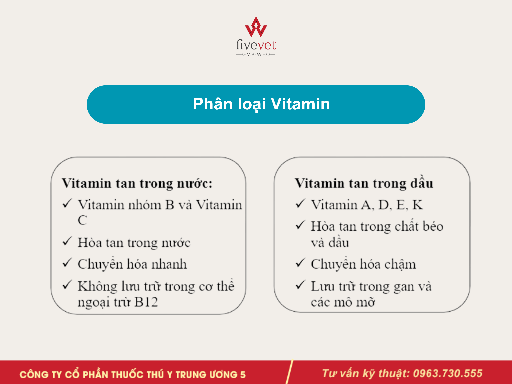 Vitamin là những hợp chất hữu cơ phức tạp mà cơ thể chỉ cần với lượng rất nhỏ, nhưng lại giữ vai trò thiết yếu trong việc duy trì hoạt động sinh lý bình thường và đảm bảo sức khỏe tối ưu cho vật nuôi.
