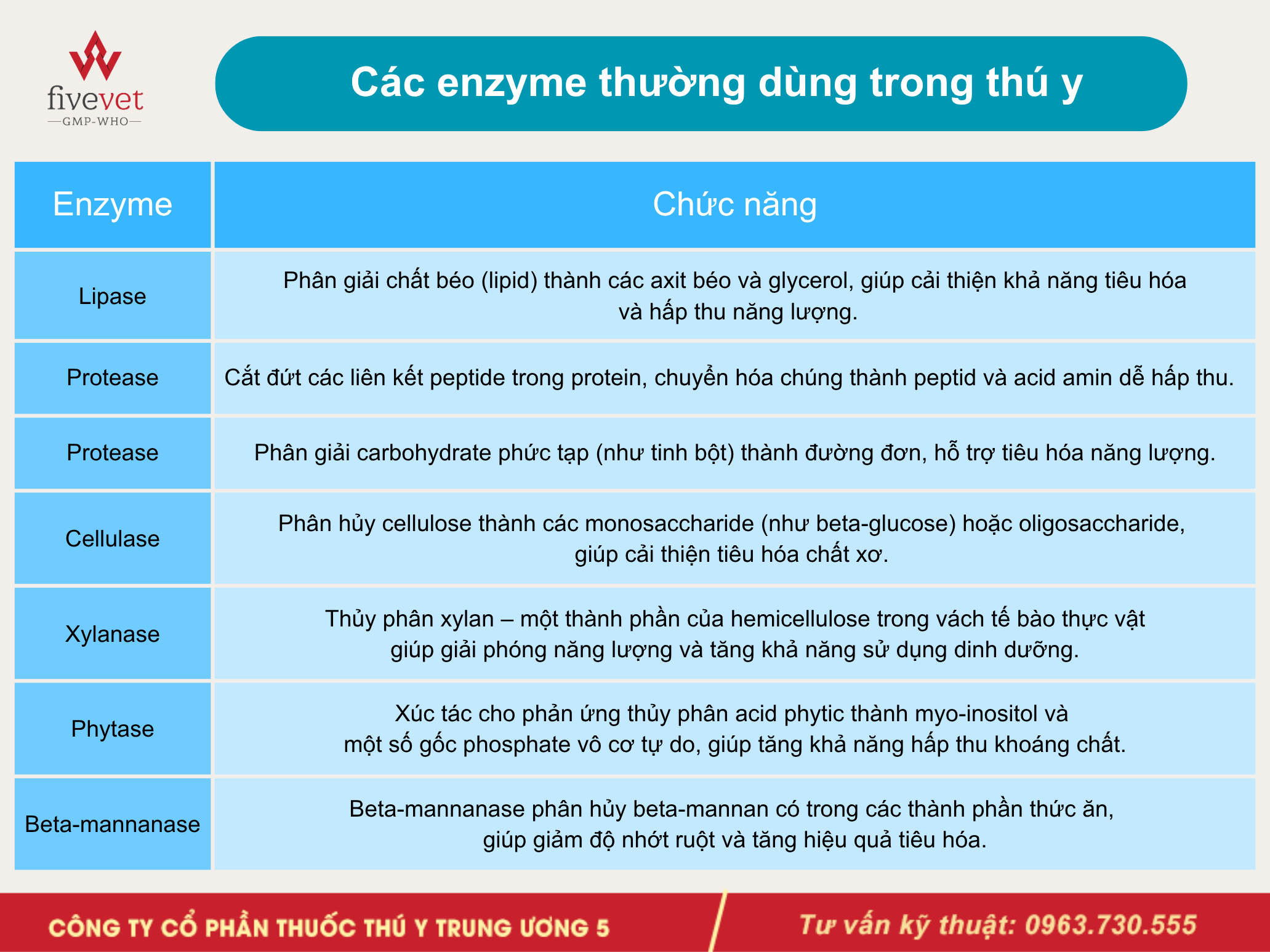 Enzyme là chất xúc tác sinh học, giúp phân giải các phân tử phức tạp trong thức ăn, tăng tốc độ tiêu hóa, nâng cao khả năng hấp thu dưỡng chất, giảm chi phí thức ăn và tăng hiệu suất chăn nuôi.