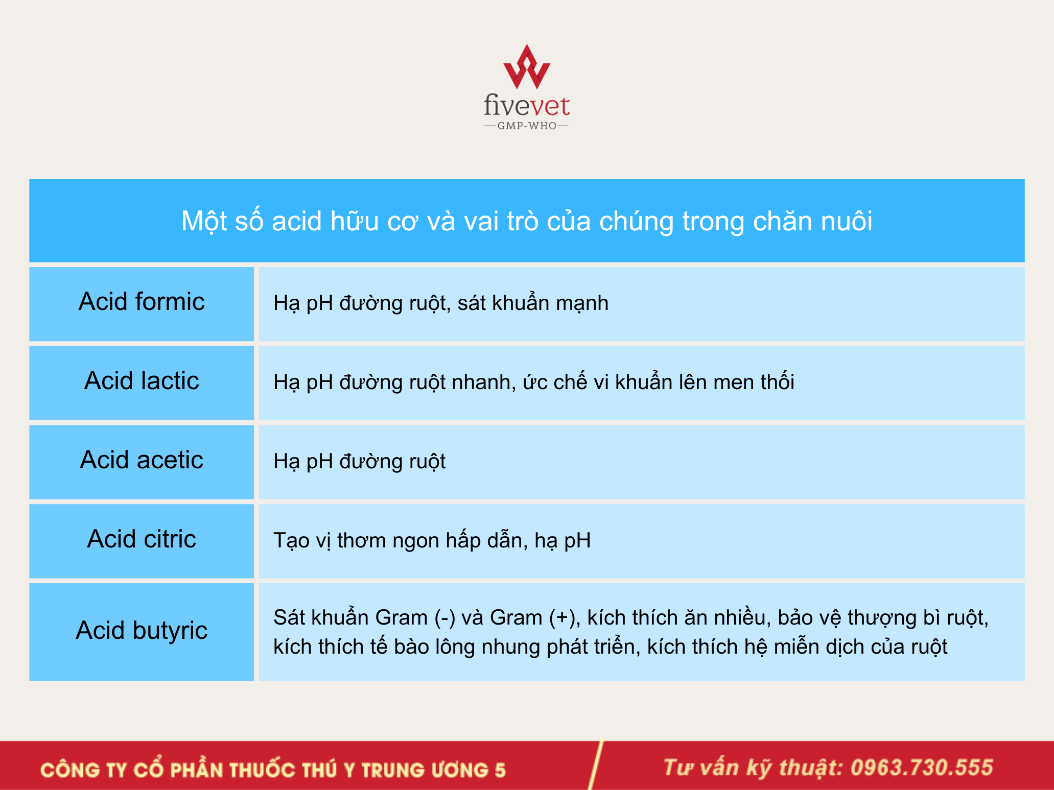 1. Acid hữu cơ có vai trò gì trong chăn nuôi?