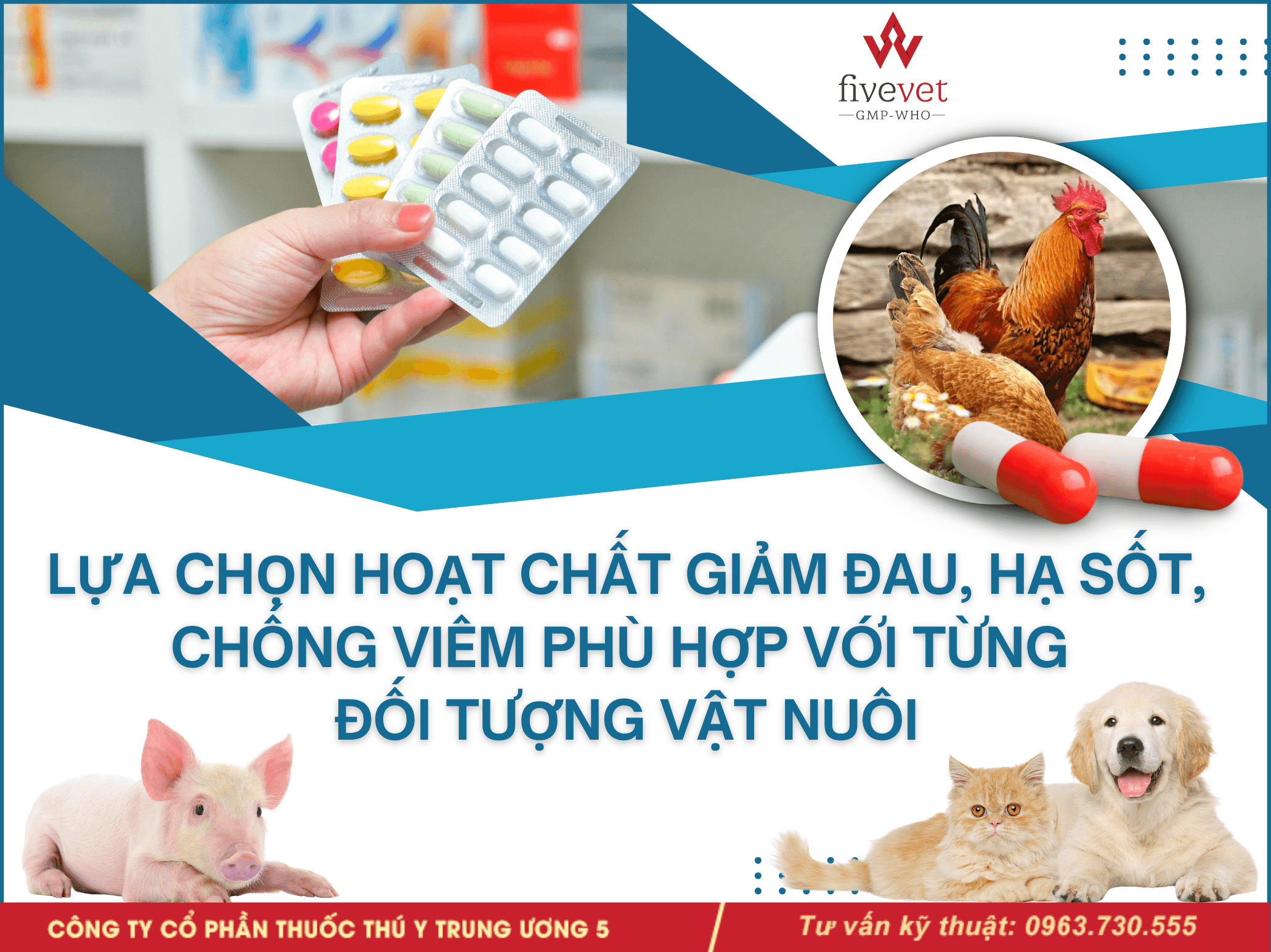 Mỗi loài vật nuôi có khả năng đáp ứng và chuyển hóa thuốc khác nhau, đặc biệt ở các giai đoạn như mang thai, nuôi con hay sau phẫu thuật. Vì vậy, Fivevet gợi ý cách lựa chọn thuốc phù hợp theo từng loài và từng tình huống, giúp nâng cao hiệu quả điều trị và đảm bảo an toàn cho vật nuôi.