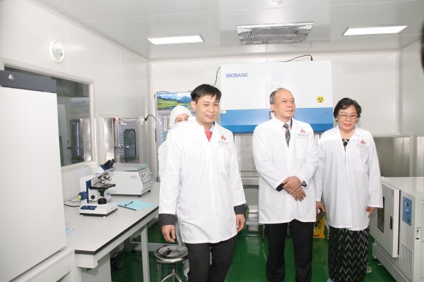 Ảnh: Thứ trưởng Vũ Văn Tám đi thăm khu kiểm nghiệm, nhà máy sản xuất vắc xin và sinh phẩm thú y của công ty.