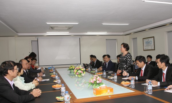 Ảnh: TS. Nguyễn Thị Hương – Tổng Giám đốc Công ty báo cáo với Thứ trưởng Vũ Văn Tám về tình hình hoạt động của Fivevet.