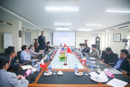 Phát biểu tại buổi làm việc, ông Lê Việt Thắng - Phó Tổng Giám đốc đã giới thiệu về lịch sử phát triển của công ty và định hướng phát triển trong tương lai. Tại đây, T.S Nguyễn Thị Hương - Tổng Giám Đốc Công ty Cổ phần Thuốc thú y Trung ương 5 đã đánh giá cao chuyến thăm và làm việc của Đoàn chuyên gia nghiên cứu vắc xin Dịch tả lợn Châu Phi của Bộ Nông nghiệp Hoa Kỳ và bà khẳng định: “Với tiềm lực hiện nay, Fivevet có đủ năng lực, cơ sở vật chất, cũng như nguồn lực tài chính để có thể tiếp nhận, nghiên cứu và phát triển các loại vắc xin, đặc biệt là vắc xin phòng bệnh Dịch tả lợn Châu Phi nếu được chuyển giao công nghệ”. Bà cũng mong muốn trong thời gian tới sẽ có những hợp tác chuyên môn với Bộ Nông nghiệp Hoa Kỳ trong việc nghiên cứu, sản xuất vắc xin Dịch tả lợn Châu Phi và nhiều loại vắc xin khác trên động vật.