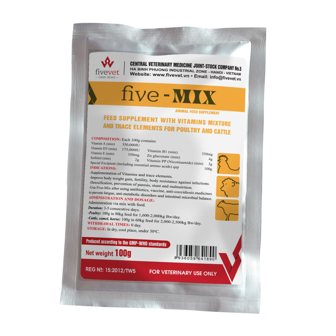 -Use Five-Mix after using antibiotics, vaccines, anti-coccidiosis medicines to prevent fatigue, anti-metabolic disorders and intestinal microbial balance.