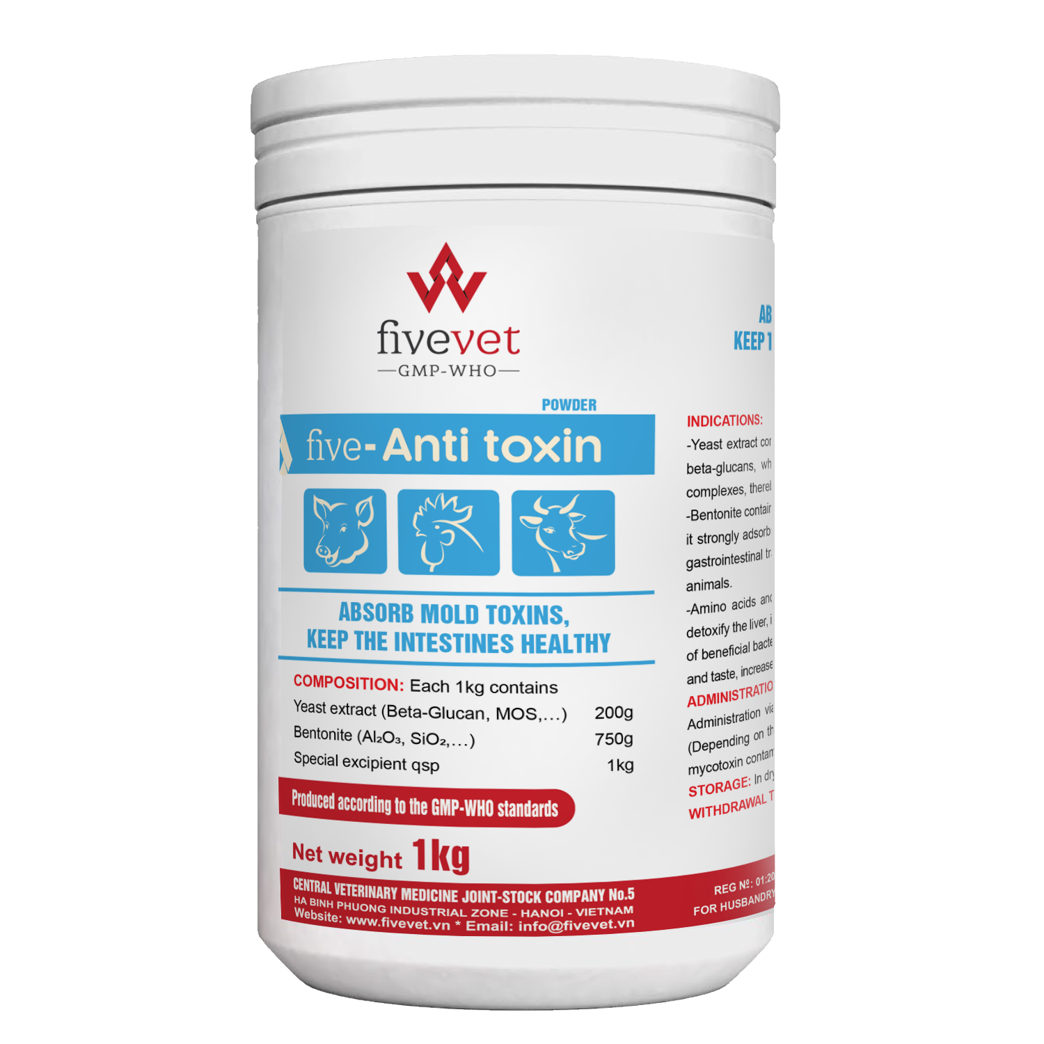 -Bentonite contains Al2O3, SiO2, ... has a large surface area, so it strongly adsorbs mycotoxins such as aflatoxin, protects the gastrointestinal tract, liver, kidneys, and prevents diarrhea in animals.