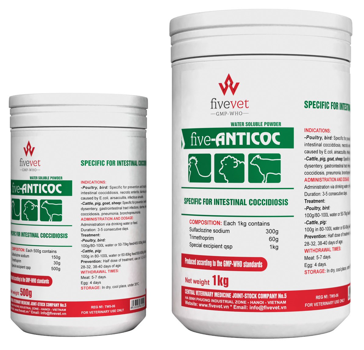 -Poultry, bird: Specific for prevention and treatment of intestinal coccidiosis, necrotic enteritis, diarrhea, paresis caused by E.coli, airsacculitis, infectious sinusitis.