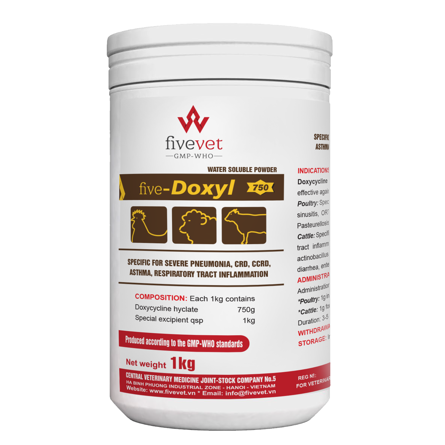 *Poultry: 1g in 10L of water or 5kg feed for 45-60kg Bw/day