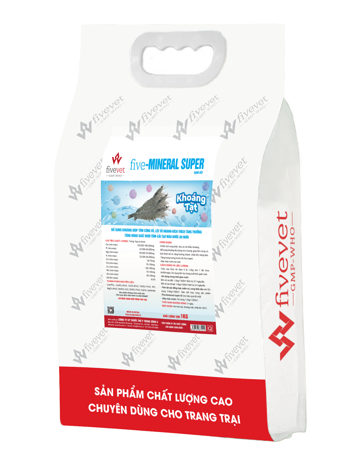 - Tôm lột xác đồng loạt, mềm vỏ, cong thân do đục cơ: Sử dụng 3-5kg/1.000m³. Nên kết hợp cùng sản phẩm Five-Aminovit super để cho hiệu quả tốt nhất.