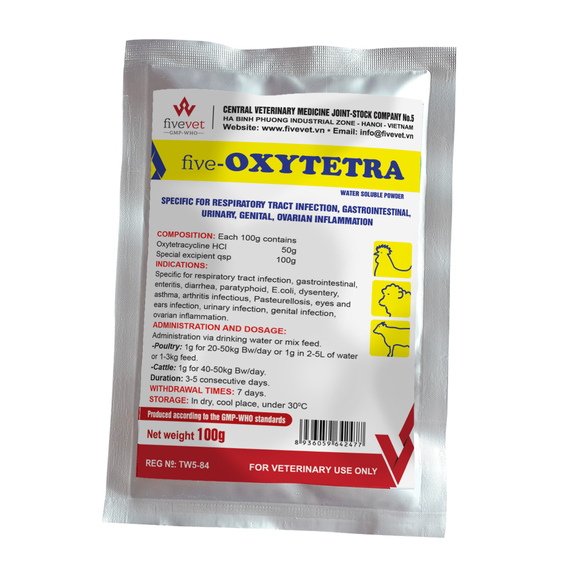 -Poultry: 1g for 20-50kg Bw/day or 1g for 2-5L of water or mix 1-3kg feed.