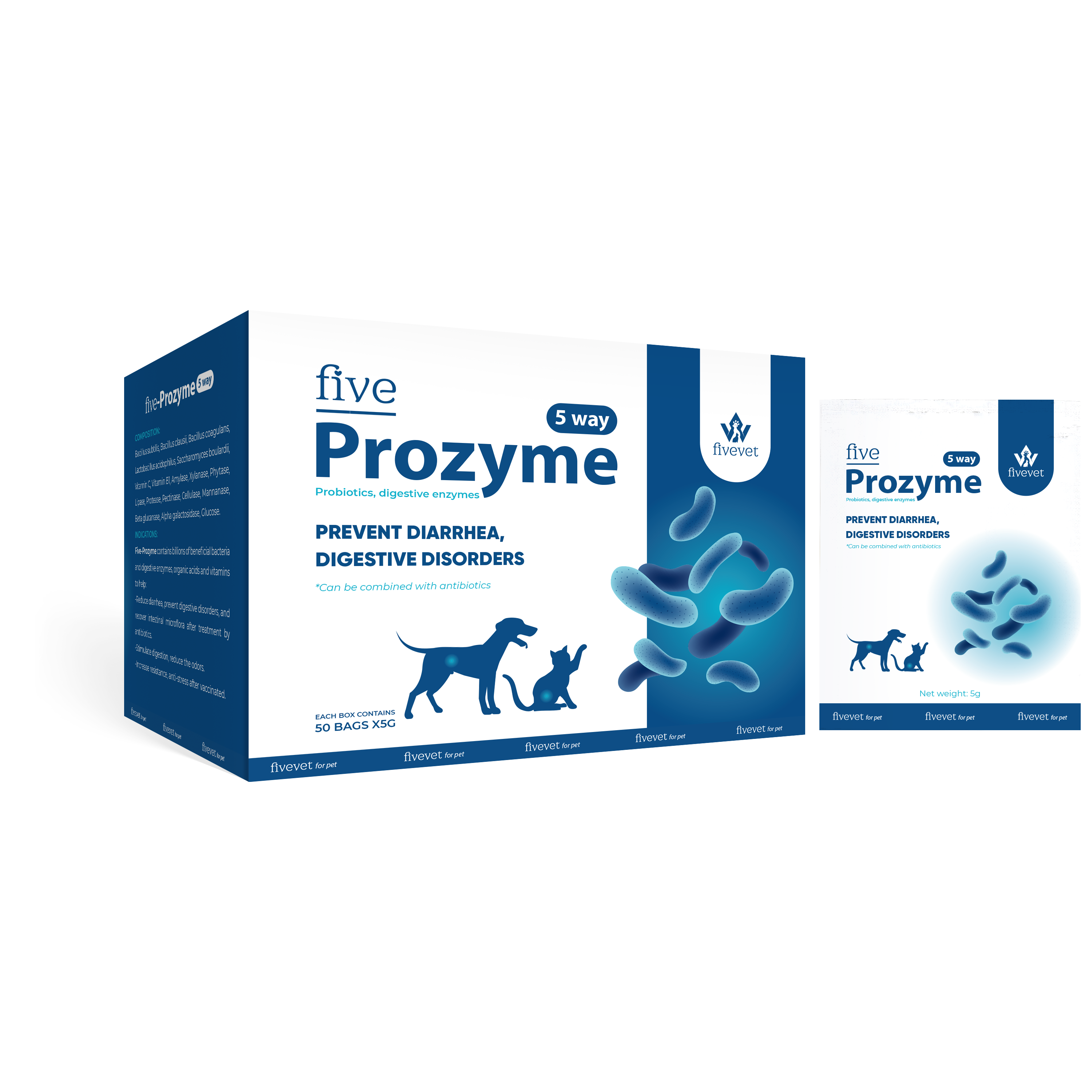Five-Prozyme 5 way contains billions of beneficial bacteria and digestive enzymes, organic acids and vitamins to help: