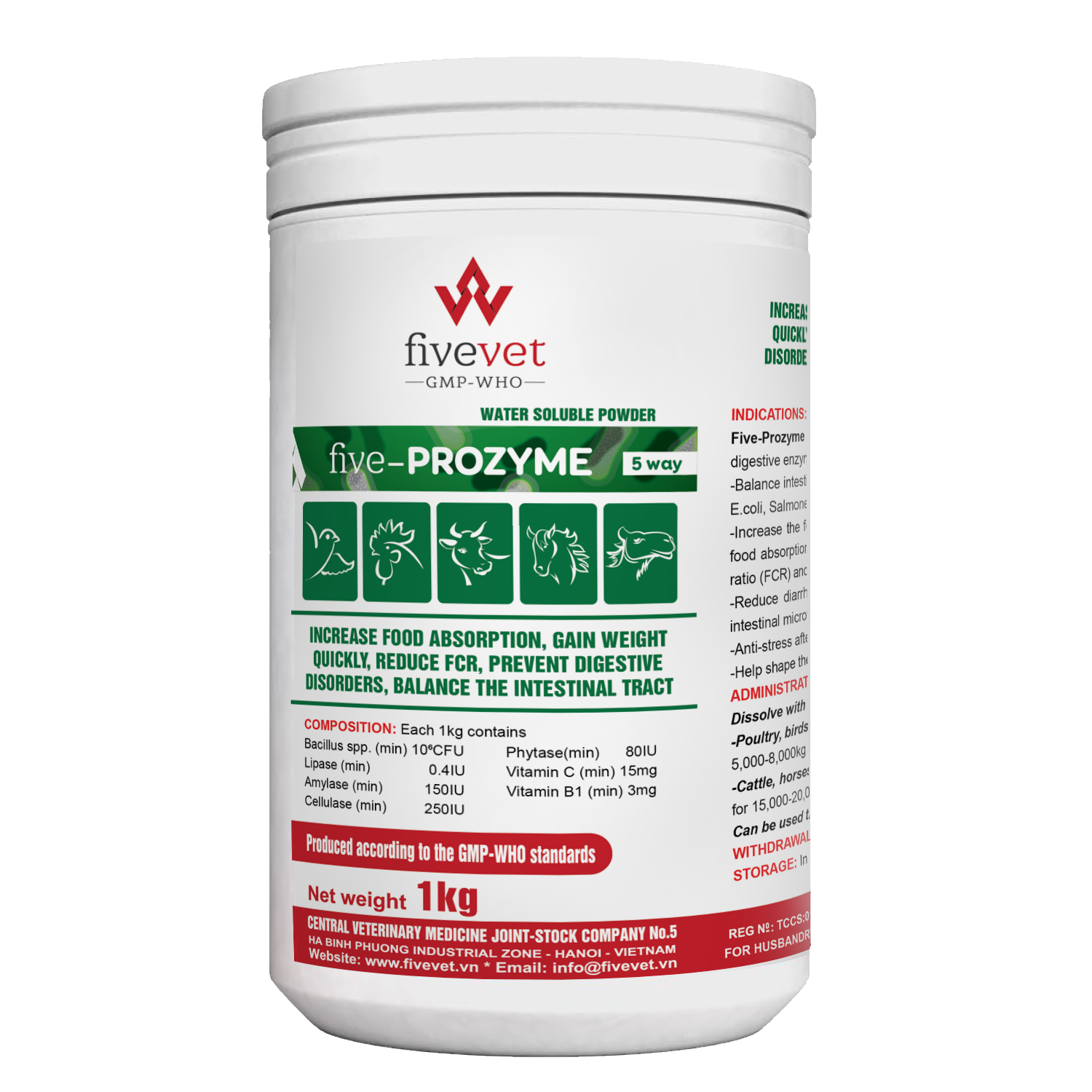 Five-Prozyme contains billions of beneficial bacteria and digestive enzymes, organic acids and vitamins to help: