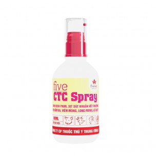 + Xử lý các vết loét, các u cục trên bề mặt da do bị viêm, thối lở loét, chảy nước ra bằng dung dịch Five-CTC Spray phun, xịt trực tiếp vào các vết lở loét 1-2 lần/ngày. Liệu trình 5-7 ngày.