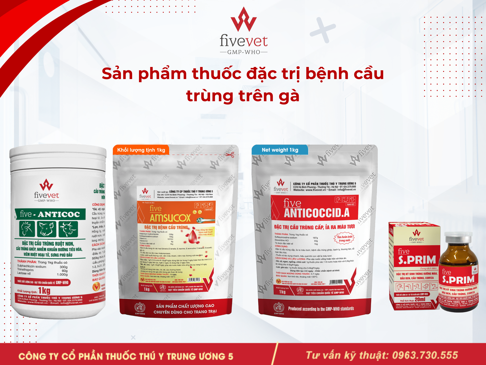 Các sản phẩm của Fivevet đặc trị bệnh cầu trùng trên gia cầm