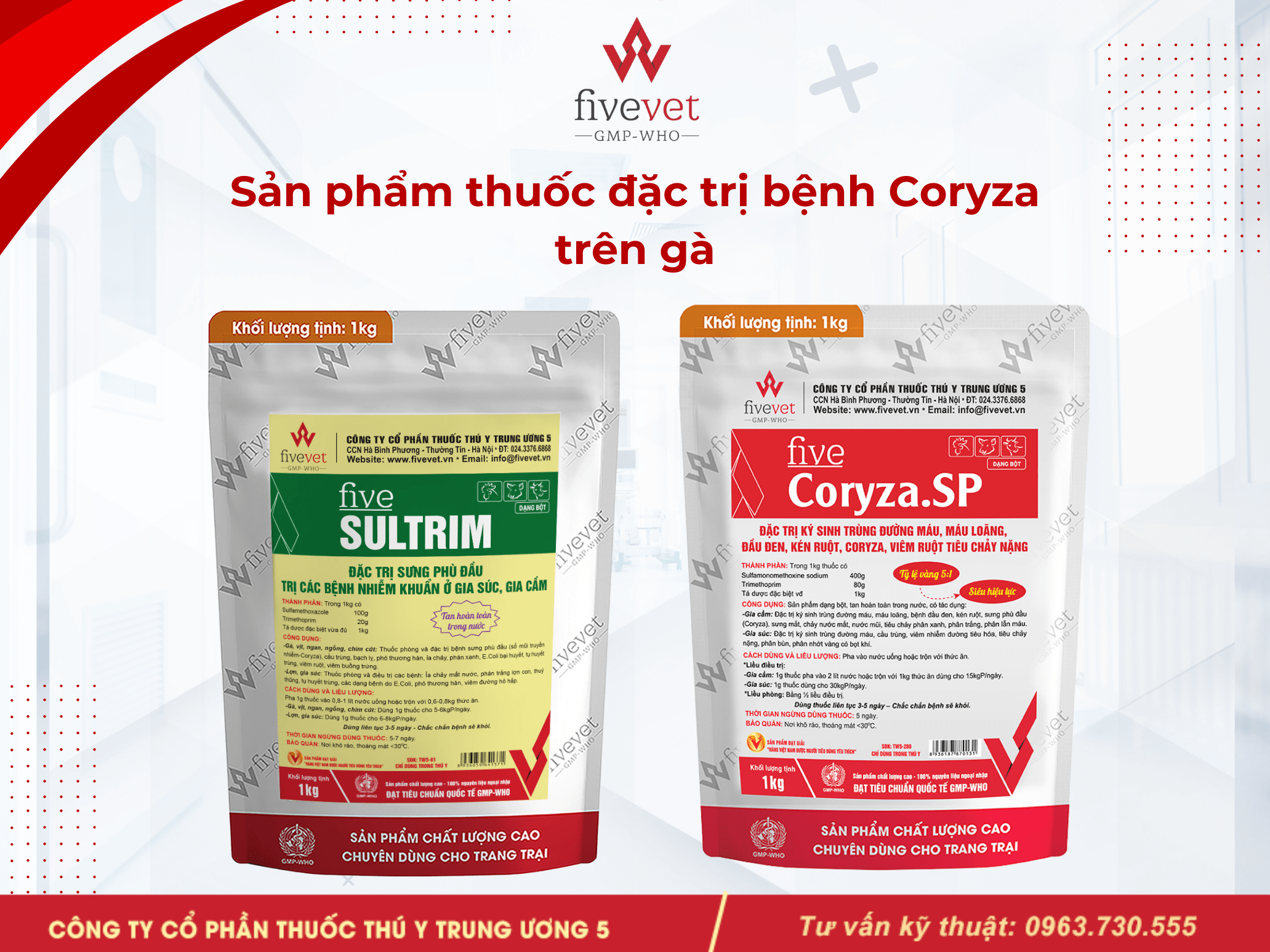 Các sản phẩm của Fivevet đặc trị bệnh coryza trên gà