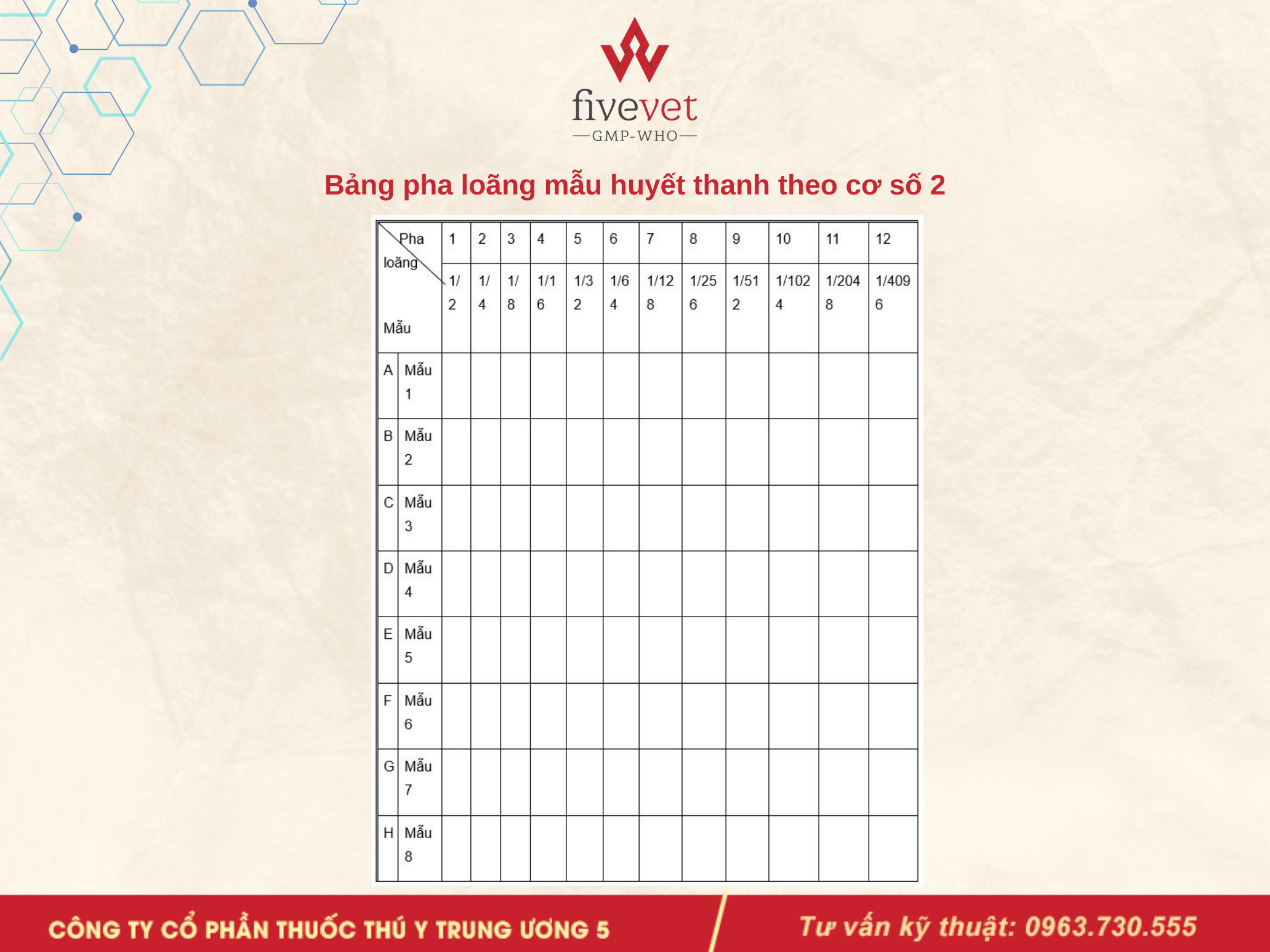 Hướng dẫn pha loãng mẫu huyết thanh từ nồng độ 1/2 đến 1/4096 như sau: