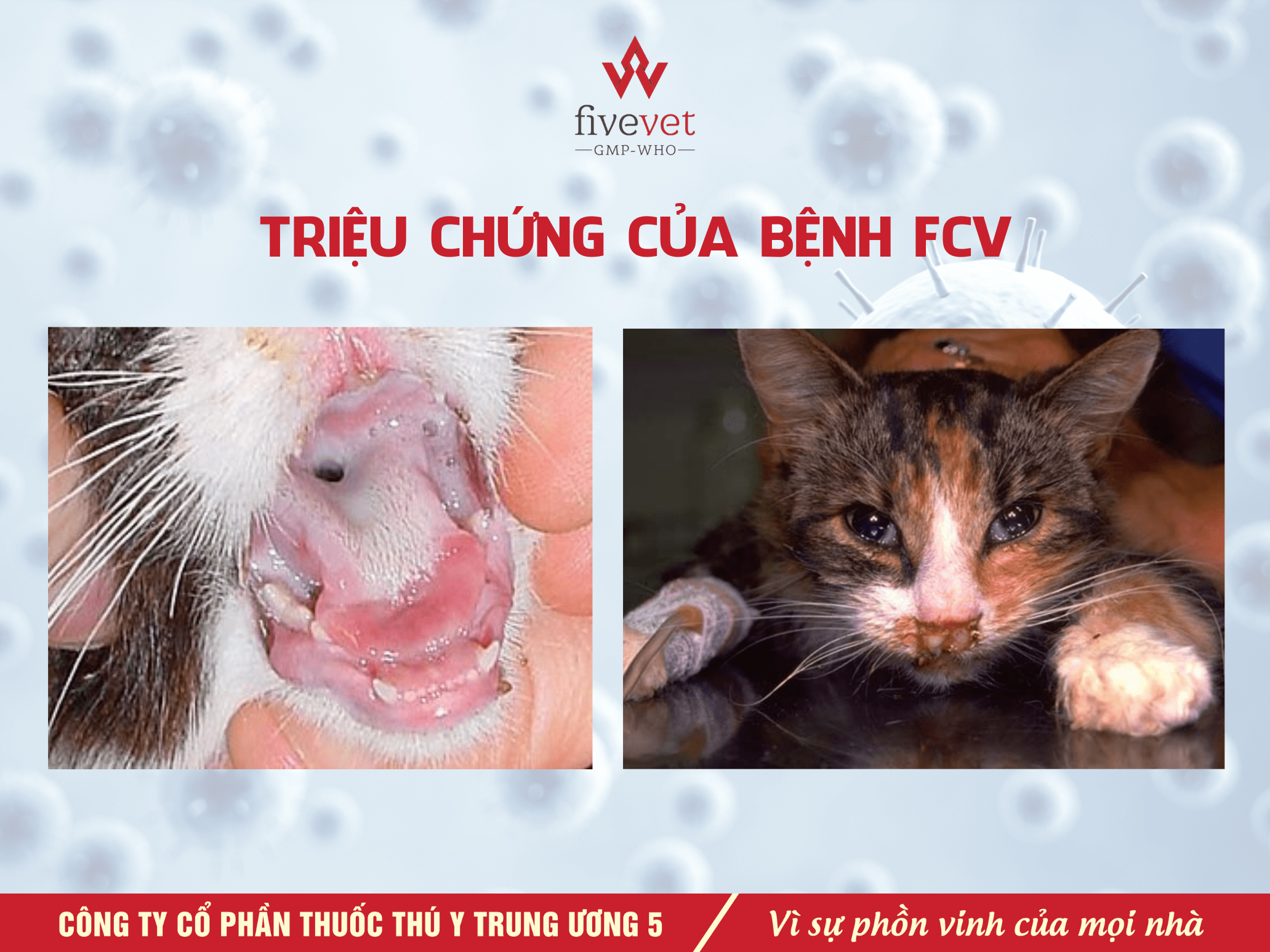 FCV có nhiều triệu chứng khác nhau, tùy thuộc vào độc lực của vi rút và tình trạng sức khỏe của mèo. Các triệu chứng thường gặp gồm: