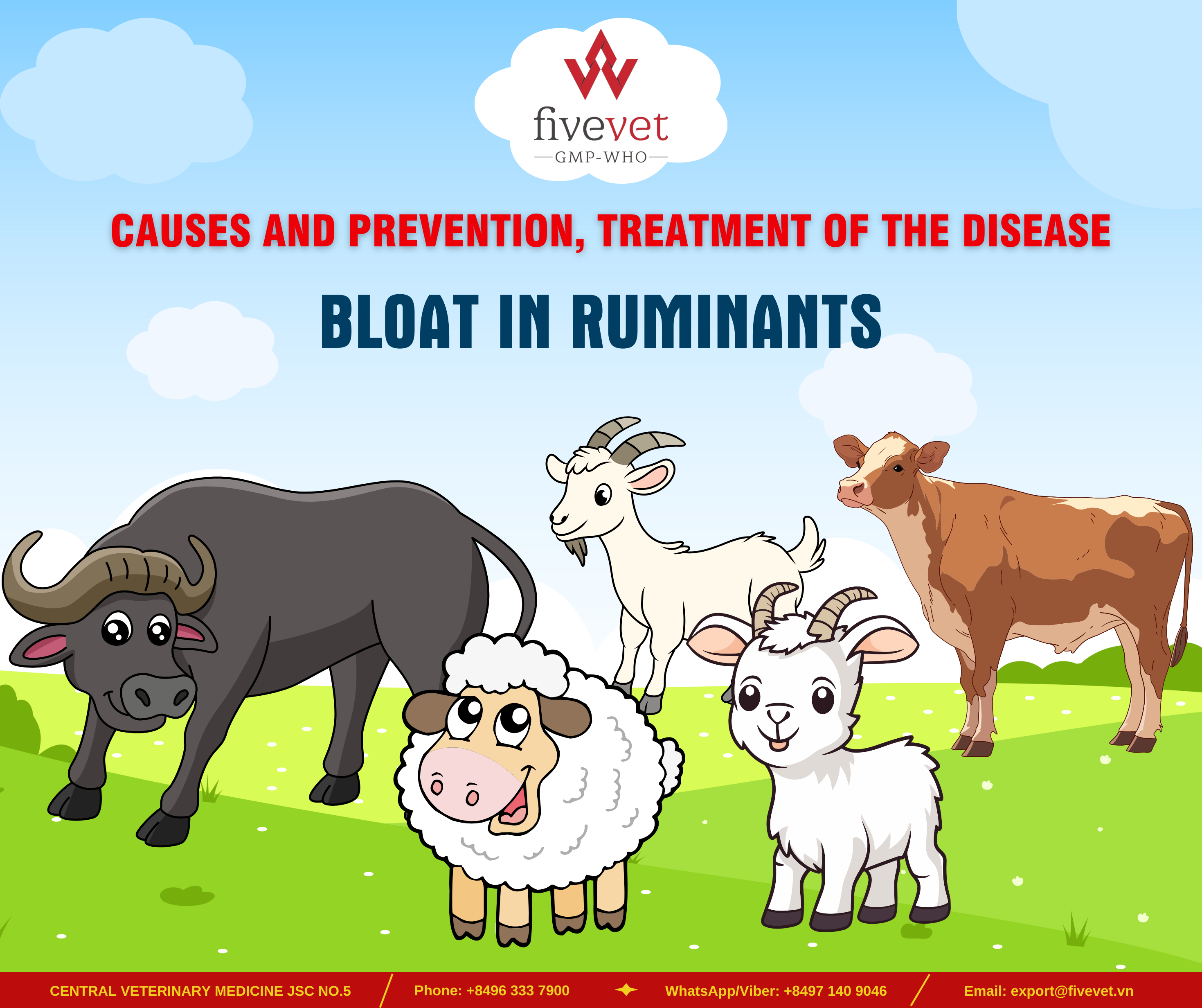 The main cause of this disease is that livestock consume large amounts of easily fermentable feed, which accumulates a significant amount of gas in the rumen. When this gas exceeds normal levels, it increases the rumen’s volume, putting pressure on other organs in the abdomen and reducing the liver’s detoxification capacity. At the same time, the volume of the chest cavity is reduced, obstructing the function of the heart and lungs, making it difficult for the animal to breathe and potentially leading to rapid death due to asphyxiation.