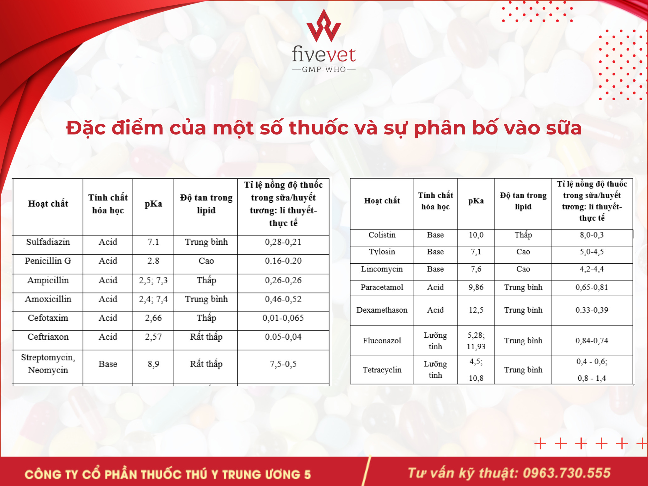 Fivevet sẽ cung cấp thông tin chi tiết về các yếu tố ảnh hưởng đến sự phân bố thuốc vào sữa, bào thai và ứng dụng điều trị bệnh trong thú y.
