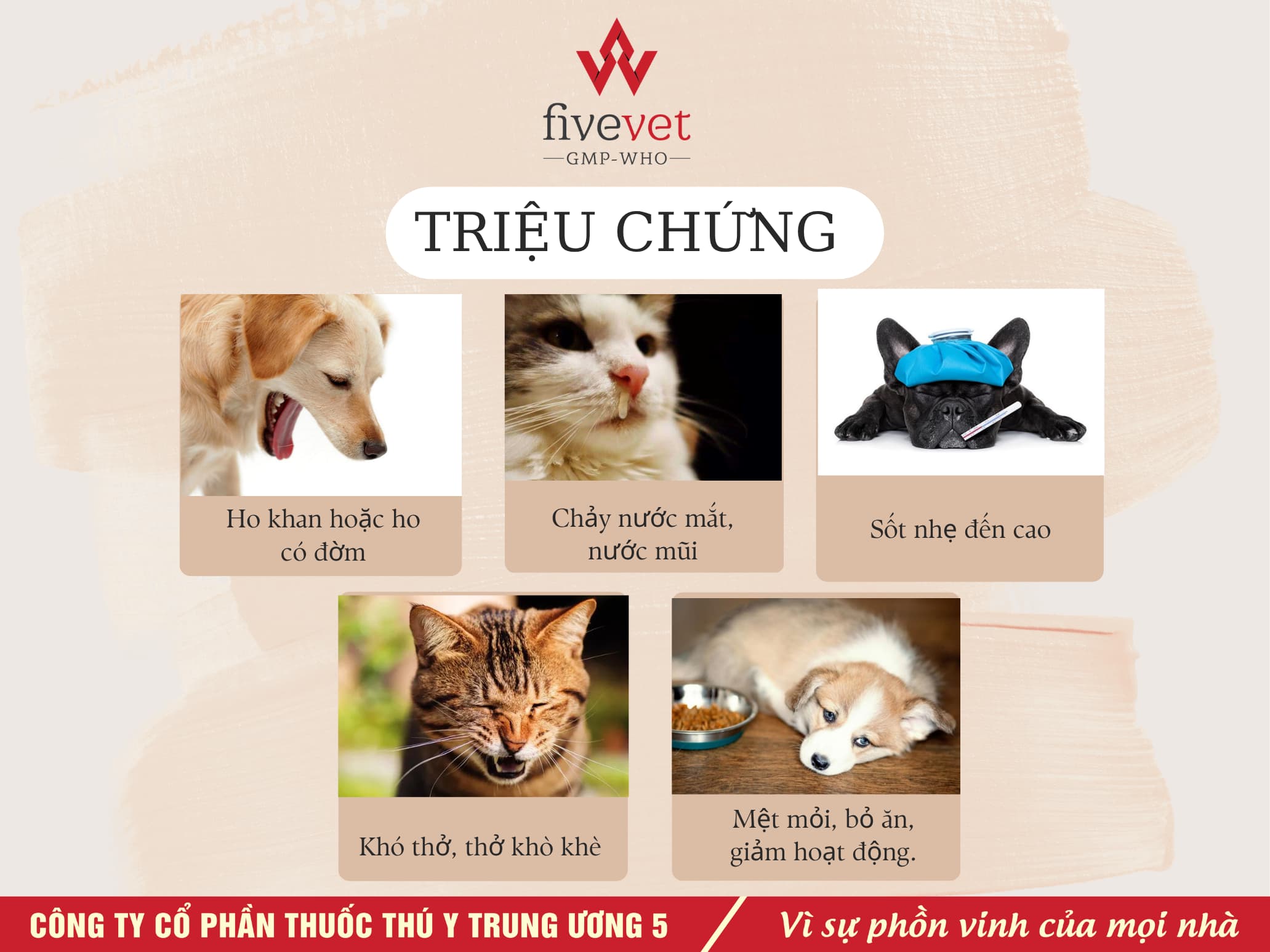 Bệnh viêm phế quản ở chó và mèo là một trong những bệnh lý đường hô hấp phổ biến nhất, đặc biệt khi thời tiết thay đổi đột ngột, độ ẩm cao hoặc môi trường sống không đảm bảo vệ sinh. Đây là tình trạng viêm nhiễm xảy ra tại phế quản, các đường dẫn khí từ khí quản đến phổi, gây ra các triệu chứng như ho kéo dài, khó thở, chảy nước mắt và dịch mũi. Nếu không được phát hiện và điều trị kịp thời, bệnh có thể chuyển sang giai đoạn mãn tính, gây ảnh hưởng nghiêm trọng đến sức khỏe và chất lượng cuộc sống của thú cưng. Trong bài viết này, Fivevet sẽ giúp bạn tìm hiểu rõ về nguyên nhân, triệu chứng, cách chẩn đoán, phương pháp điều trị và phòng ngừa bệnh viêm phế quản cho chó và mèo. Hãy cùng khám phá cách chăm sóc và bảo vệ sức khỏe cho thú cưng của bạn một cách toàn diện và hiệu quả nhất.