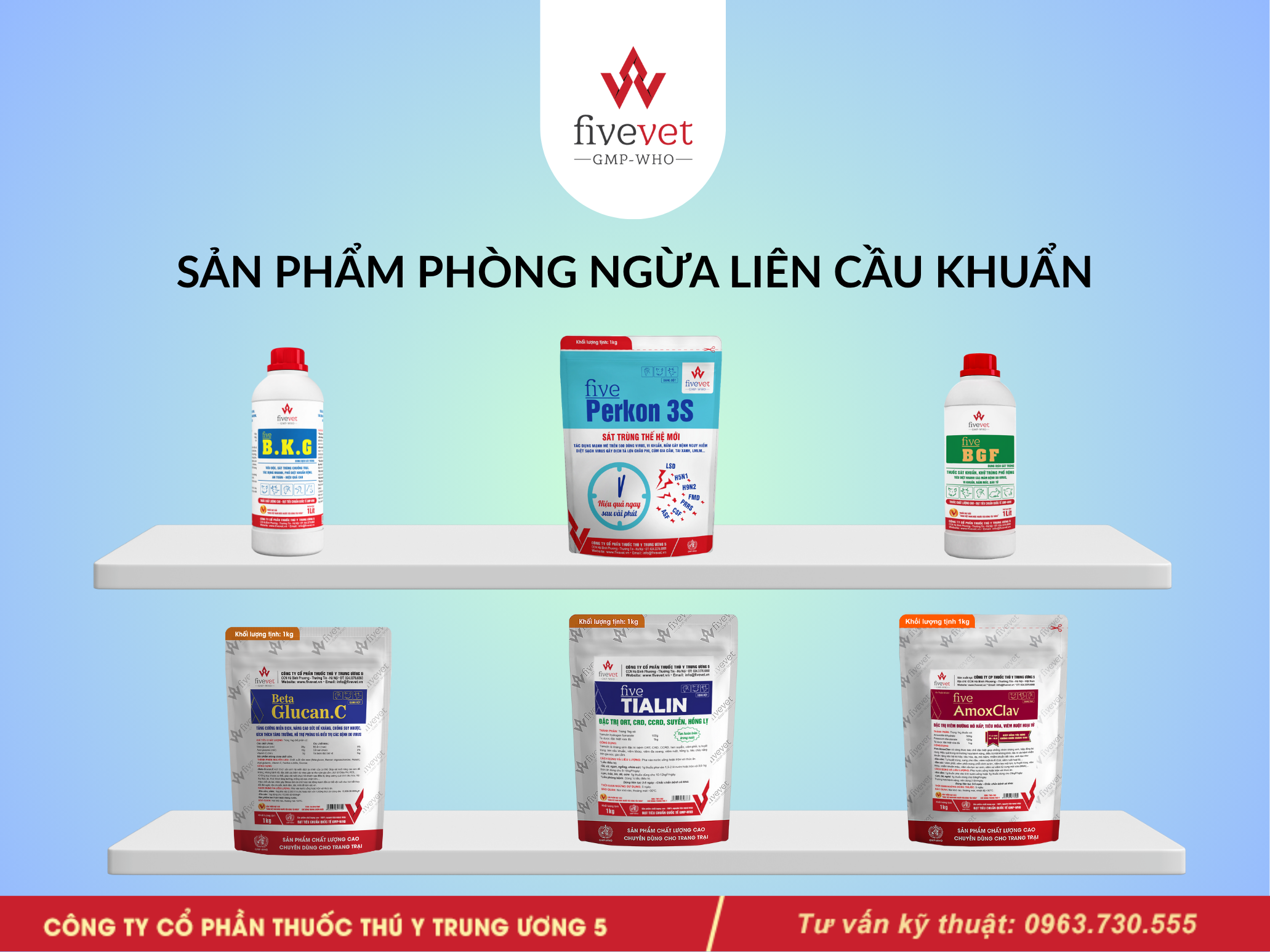 Fivevet cung cấp các giải pháp hỗ trợ điều trị và phòng ngừa bệnh liên cầu khuẩn hiệu quả bằng các sản phẩm kháng sinh đặc hiệu, giúp giảm thiểu thiệt hại và bảo vệ toàn diện sức khỏe đàn gia cầm.