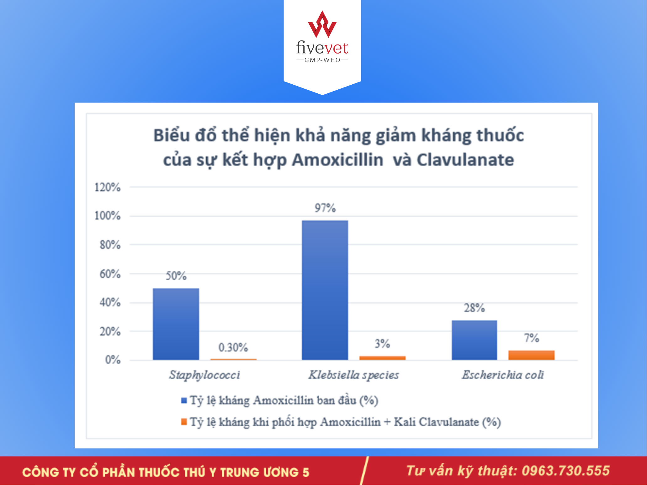 - Đối với chó mèo, sự kết hợp Amoxicillin và Kali Clavulanate (Potassium clavulante) mang lại hiệu quả giảm kháng thuốc đáng kể, nhiều chủng