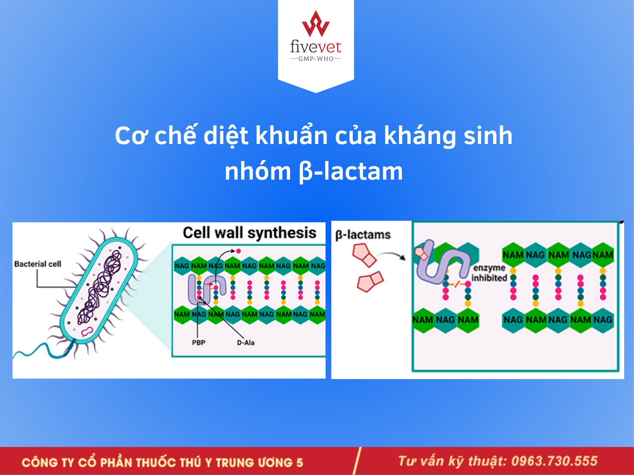 Beta-lactam là nhóm kháng sinh có cấu trúc đặc trưng là vòng β-lactam, bao gồm Penicillin, Cephalosporin và các loại tương tự. Nhóm này được sử dụng rộng rãi để điều trị nhiễm khuẩn ở vật nuôi do vi khuẩn Gram dương và Gram âm.