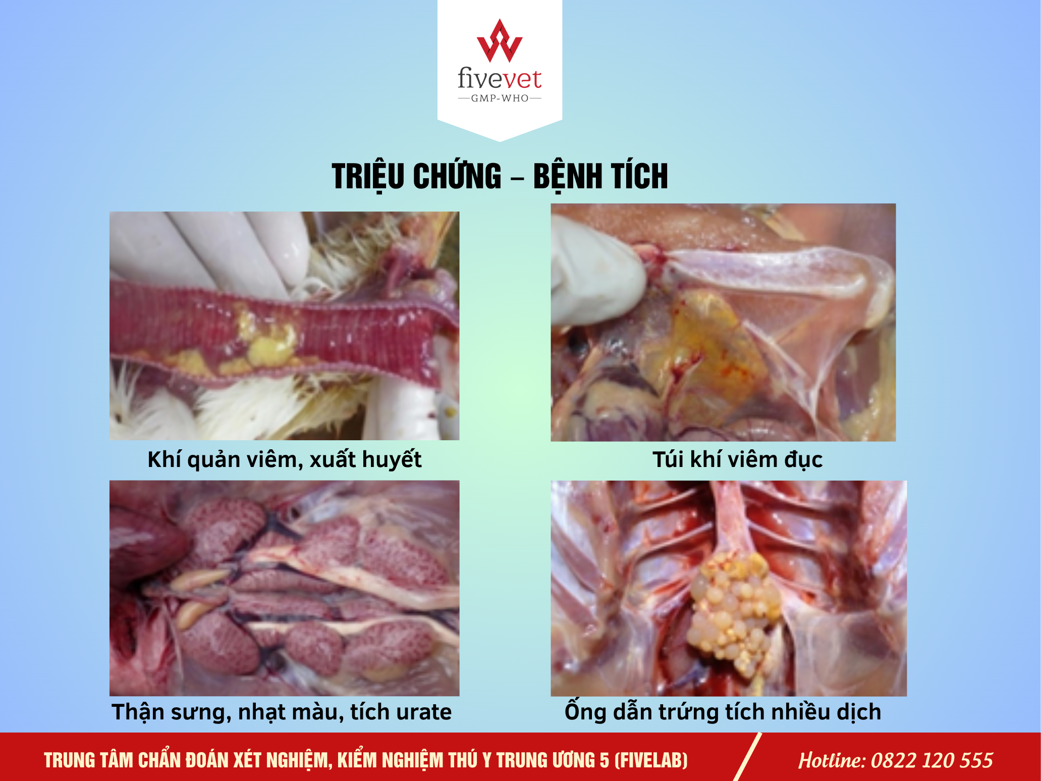 - Khí quản: Viêm sung huyết, có đờm hoặc xuất huyết đỏ tràn lan, có bã đậu trong khí quản, túi khí viêm nặng có màu vàng.