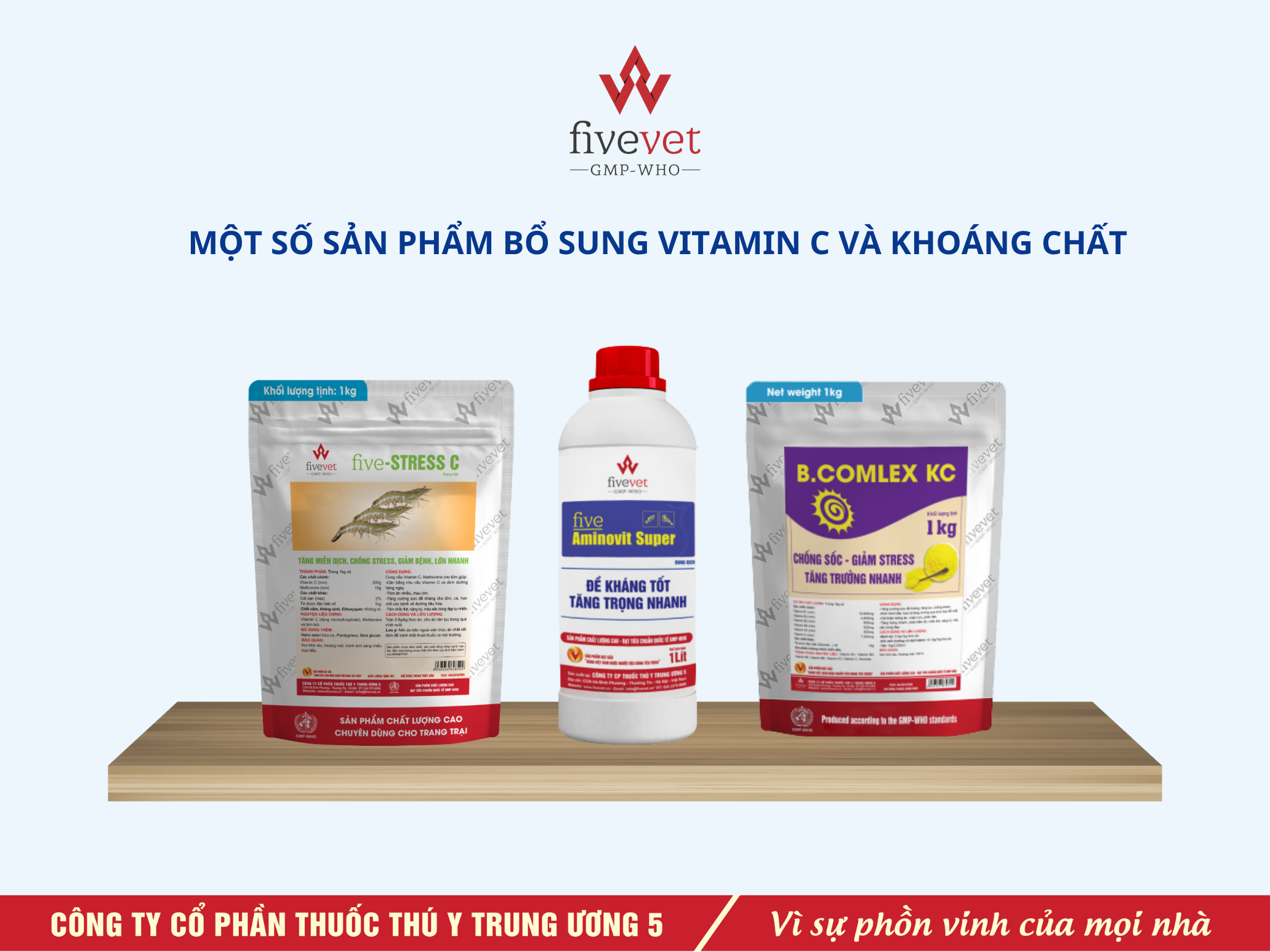 Five-Vitamin C.TS giúp chống sốc, tăng sức đề kháng, tôm ăn nhiều, mau lớn. Ngoài ra,