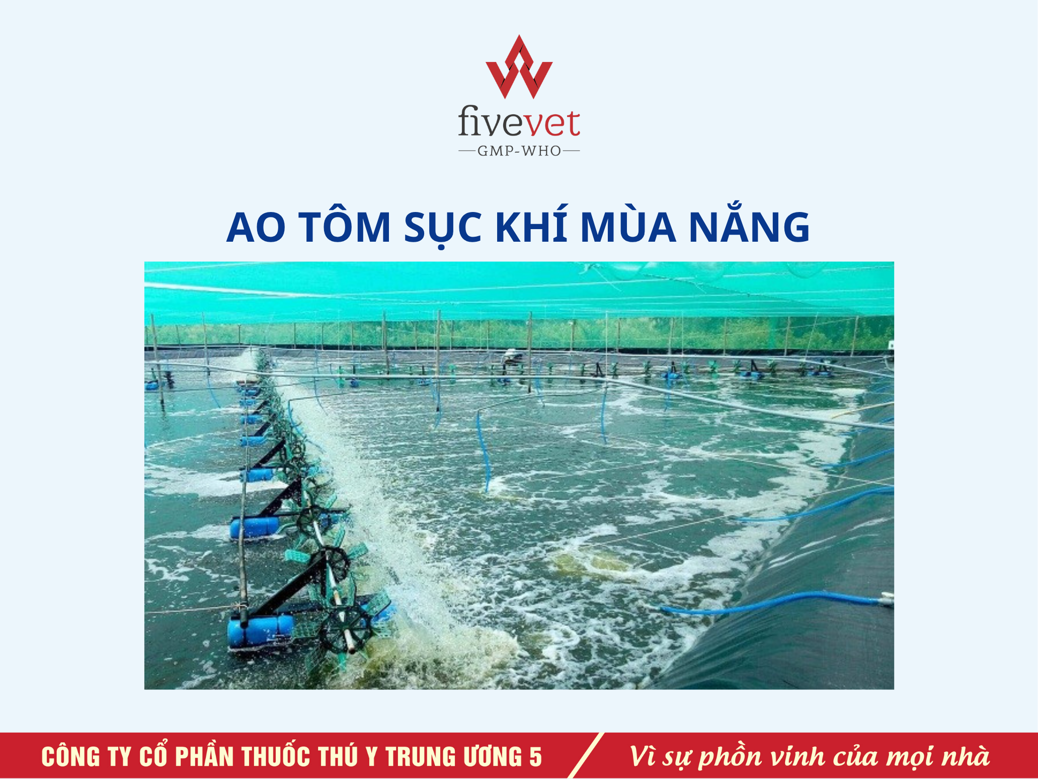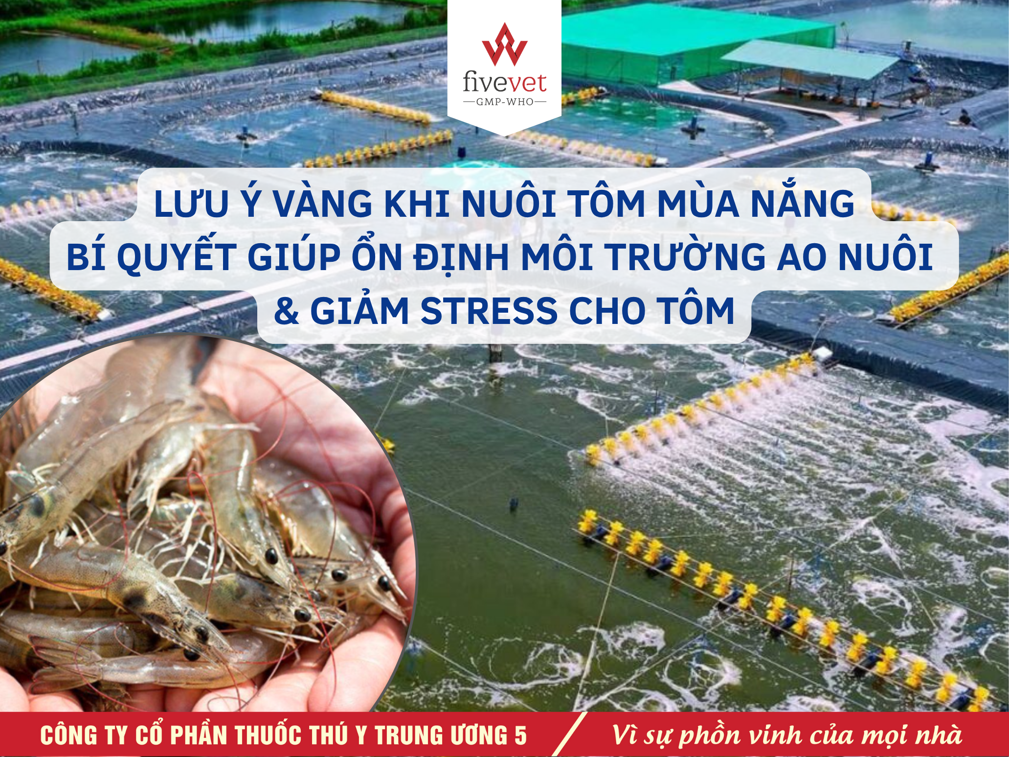 FiveAqua (Fivevet for Aqua) hỗ trợ kỹ thuật, bài viết chia sẻ những giải pháp thiết thực giúp kiểm soát môi trường ao, tăng cường sức đề kháng và giảm thiểu rủi ro trong quá trình nuôi tôm mùa nắng.