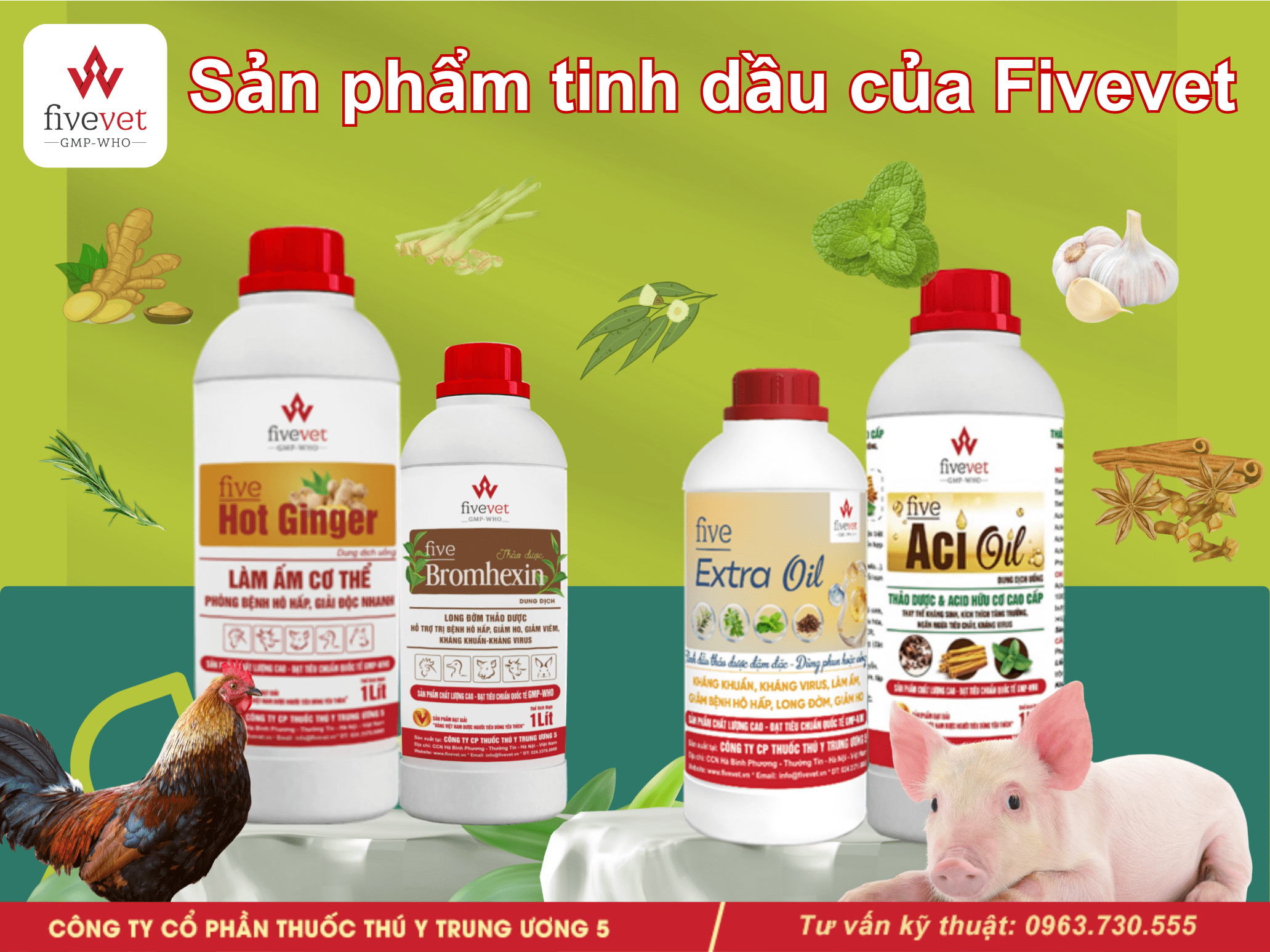 Tinh dầu tự nhiên an toàn khi dùng đúng liều và đúng cách. Các sản phẩm của Fivevet được chuẩn hóa hàm lượng, đảm bảo phù hợp cho gia súc - gia cầm và không gây tồn dư.