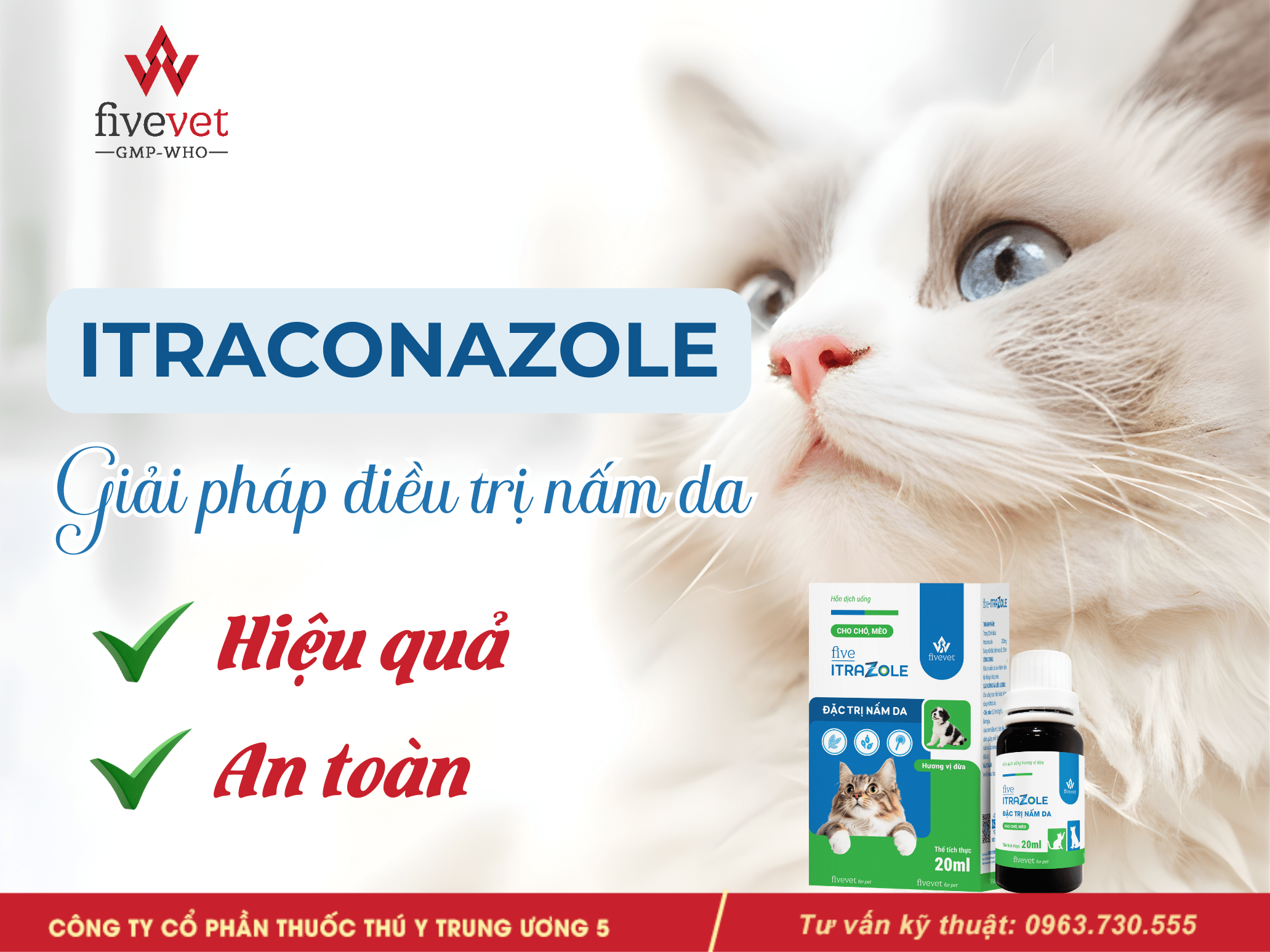Itraconazole là thuốc kháng nấm thuộc nhóm triazole, được sử dụng rộng rãi trong thú y để điều trị các bệnh do nấm da và nhiễm nấm toàn thân. Hoạt chất này được đánh giá cao nhờ phổ tác dụng rộng, khả năng phân bố tốt vào mô da. Hiệu quả và độ an toàn của Itraconazole đã được chứng minh lâm sàng trên chó và mèo.