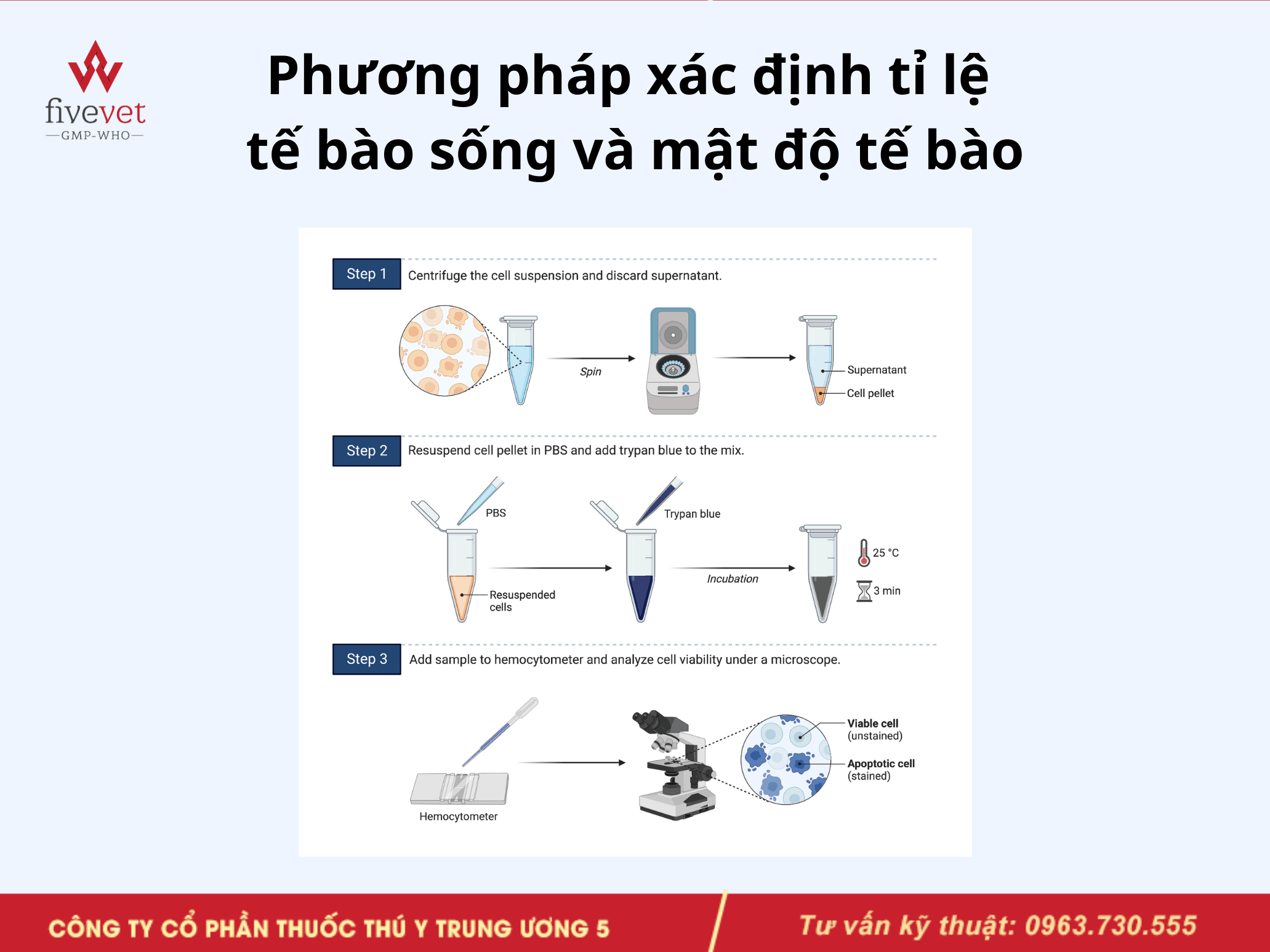 Fivevet chia sẻ đầy đủ quy trình bảo quản đông lạnh tế bào dòng: chuẩn bị tế bào, chọn môi trường trữ đông, kiểm soát nhiệt độ và đánh giá chất lượng sau rã đông, giúp tối ưu hiệu quả nghiên cứu.