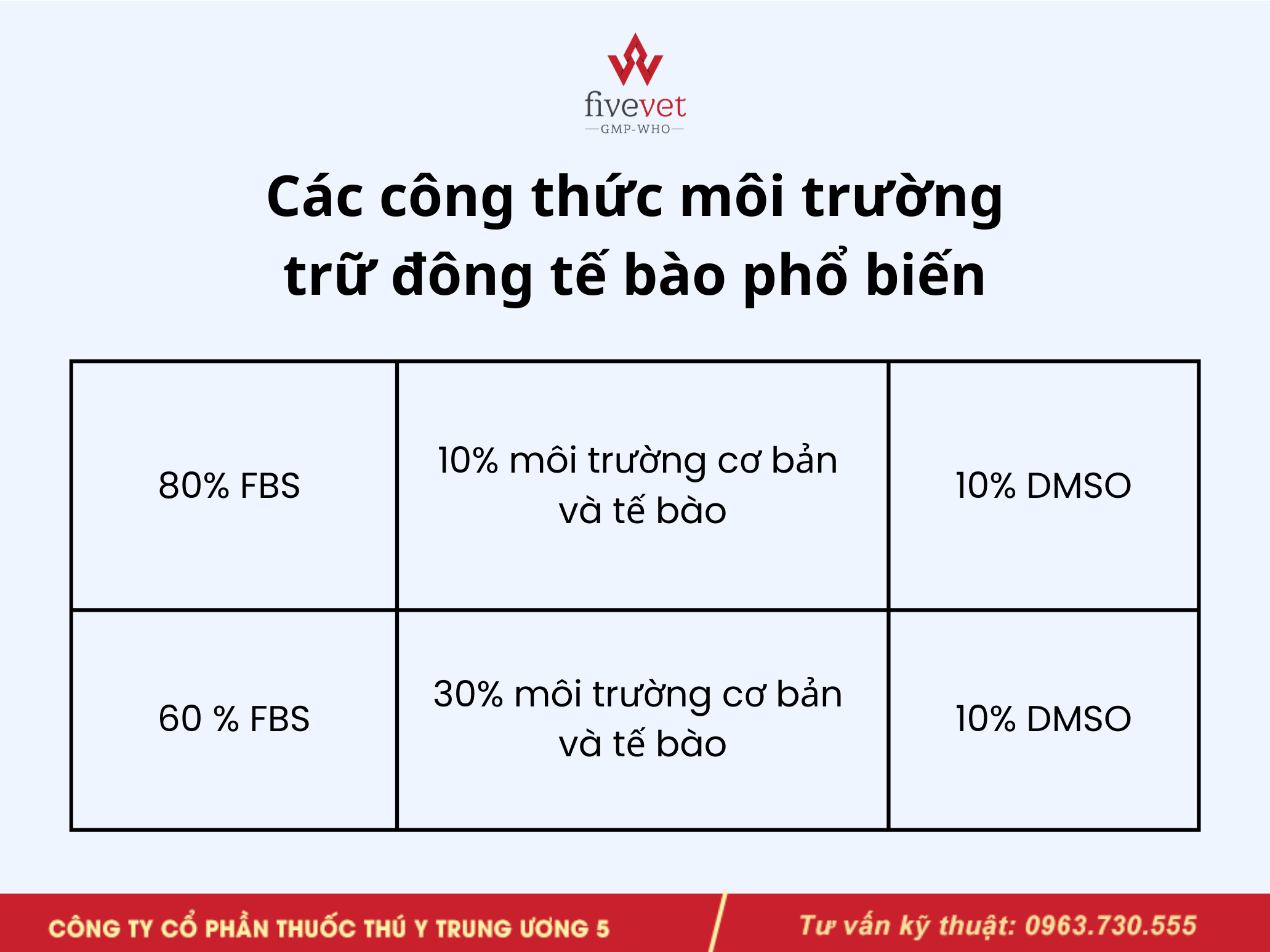 Các công thức môi trường trữ đông tế bào phổ biến