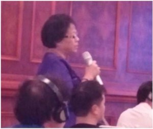 Hình ảnh: TS. Nguyễn Thị Hương – PCT Hiệp hội gia cầm Việt Nam, Tổng Giám Đốc Công Ty Cổ Phần Thuốc Thú Y Trung Ương 5 tham gia thảo luận với bài thuyết trình của ngài James Sumner Chủ tịch Hiệp hội xuất khẩu trứng và gia cầm Hoa Kỳ
