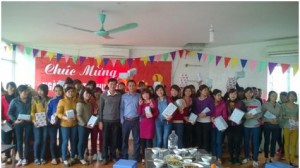 Kết thúc buổi lễ chúc mừng ngày Quốc tế Phụ nữ 8/3, đại diện lãnh đạo công ty ông Lê Việt Thắng PTGĐ và ông Phạm Đức Vũ – CTCĐ đã tặng quà cho các nữ CBCNV, người lao động trong công ty.