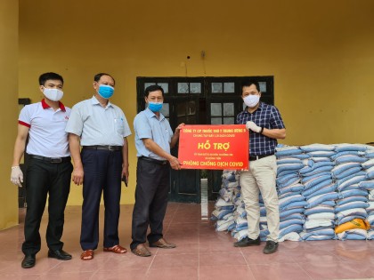 Pic: Mr Le Viet Thang-Deputy CEO and staffs in the distribution of rice and eggs for people in Dung Tien commune.