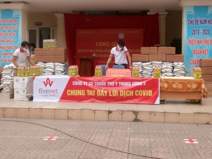 In addition, in order to encourage and support local authority of Dung Tien Commune, which was quarantined due to Covid-19 patients, Fivevet gave the necessities goods for people in Dung Tien Commune People's Committee. At the gift giving ceremony to the people in the areas, Mr. Le Viet Thang – Deputy CEO of Fivevet, shared the current difficulties with the people and leaders at all levels are working together to implement well for prevention of epidemics. Mr. Thang hopes that Fivevet’s presents will help the local resident to overcome this difficult period and wish the local leaders, together with the local resident, to implement the quarantine well, to prevent the Covid-19 epidemic. Appreciated the affection of the Board of Directors of Fivevet, the representative of the local leader recognized the action, the valuable sharing of the company and promise that the meaningful presents will be delivered to the local resident soonest.