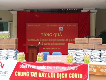 With the noble gesture, humane spirit, the precious tradition of the Vietnam, Fivevet is proud to be a company which take CSR very seriously, we join hands with the whole country to support and motivate labor workers, teachers, people in epidemic area who are alleviated difficulty, physical and mental privation. In the peak days of preventing and fighting against Covid-19, Central Veterinary Medicine Joint Stock Company presented nearly 5 tons of rice, nearly 10,000 chicken eggs and thousands of liters of cooking oil to teachers of Preschool, Primary and Secondary School of Dinh Cong Ward, Hoang Mai District, Hanoi, people in Dung Tien Commune, Thuong Tin District and all employees of the company.