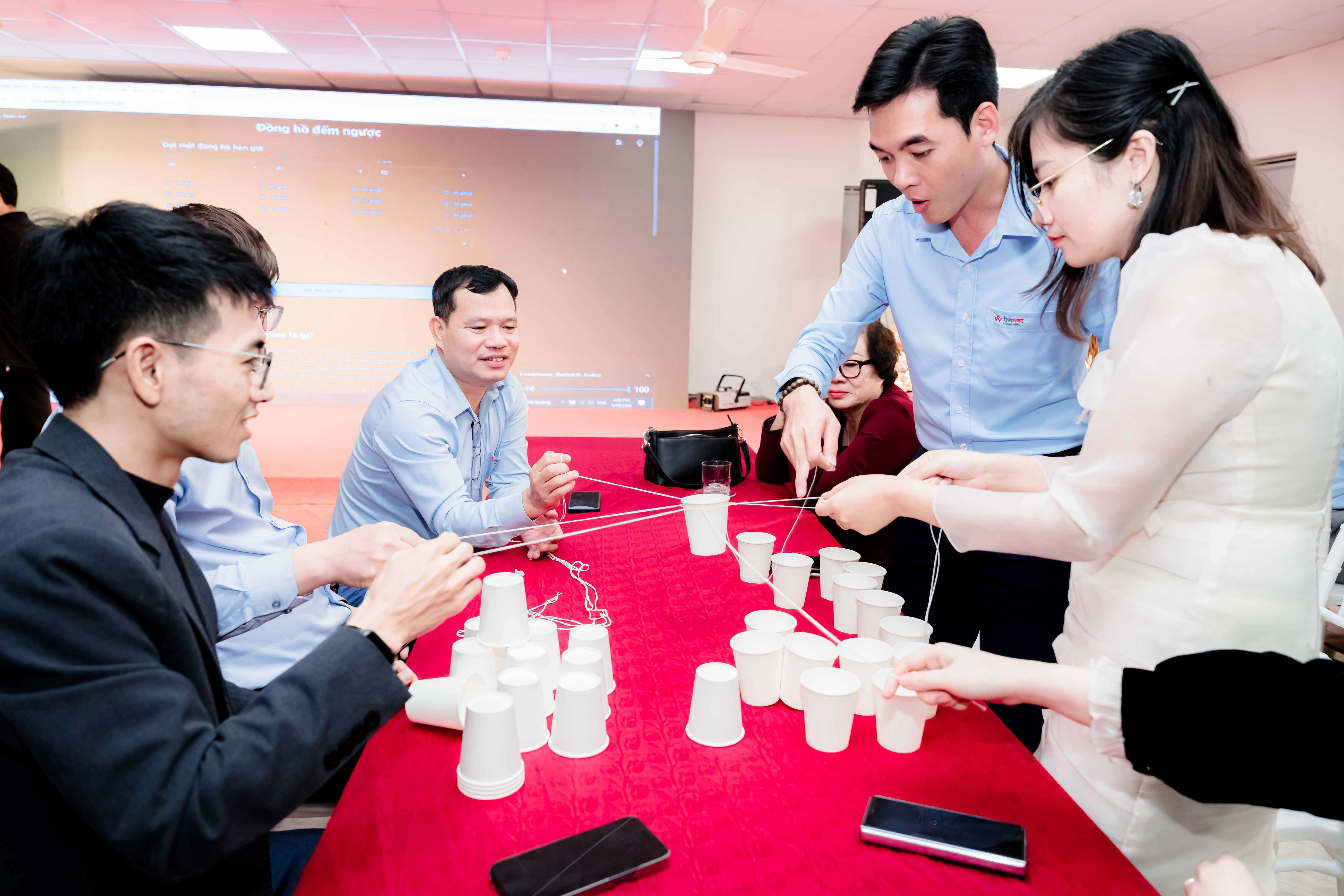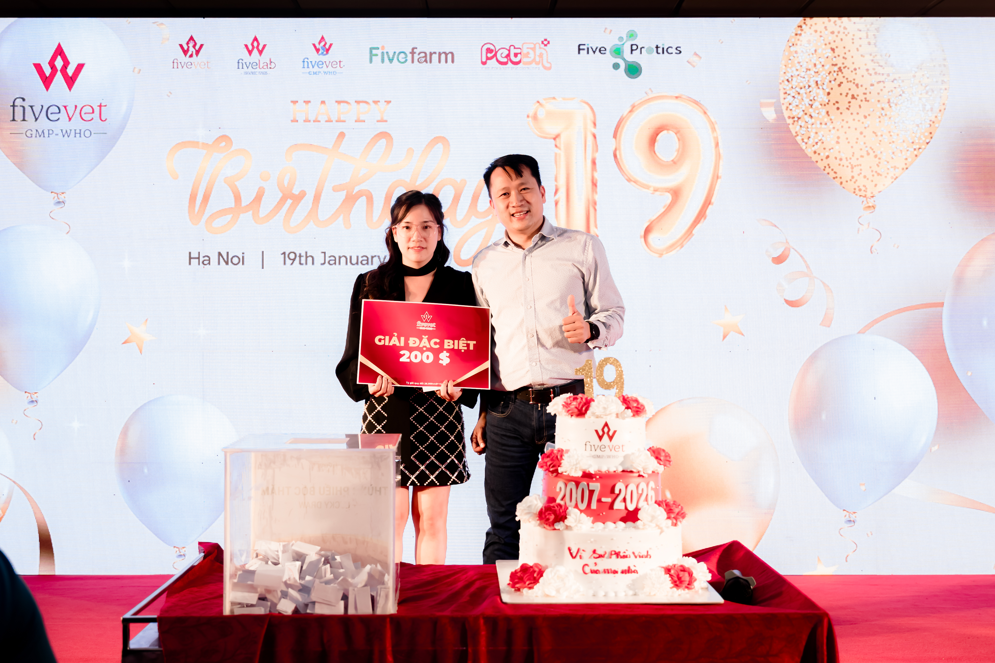Không khí chương trình trở nên ấm áp hơn trong khoảnh khắc kỷ niệm 19 năm thành lập Fivevet. Nghi thức thổi nến, cắt bánh không đơn thuần là một dấu mốc thời gian, mà là dịp để cả tập thể cùng nhìn lại hành trình đã đi qua với sự biết ơn và tự hào. 19 năm - một hành trình đủ dài để khẳng định bản lĩnh, để giữ vững những giá trị cốt lõi và để tiếp tục nuôi dưỡng niềm tin vào con đường đã chọn. Xen kẽ trong không gian ấy là những hoạt động giao lưu, minigame mang đậm tinh thần kết nối. Khoảnh khắc cả hội trường cùng suy nghĩ, liên kết từng dữ kiện để tìm ra từ khóa chung “Đoàn kết” như một lời nhắc nhở giản dị nhưng sâu sắc về giá trị đã và đang tạo nên sức mạnh của Fivevet. Tiếp đó, trò chơi “Tay nhanh xếp cốc, rinh quà cực sốc” khuấy động bầu không khí bằng sự phối hợp nhịp nhàng và tinh thần đồng đội, để tiếng cười và sự hào hứng lan tỏa khắp không gian chương trình. Đặc biệt, những giây phút hồi hộp khi từng cái tên được xướng lên trong phần bốc thăm trúng thưởng đã mang lại niềm vui trọn vẹn, góp phần khép lại sự kiện bằng những cảm xúc tích cực và đáng nhớ. Những hoạt động ấy, dù giản dị, lại mang ý nghĩa lớn trong việc xóa nhòa khoảng cách, gắn kết con người và nuôi dưỡng tinh thần “đồng hành để cùng đi xa”. Bởi hơn cả một doanh nghiệp, Fivevet được xây dựng như một tập thể gắn bó, nơi mỗi thành viên đều là một phần của hành trình chung.