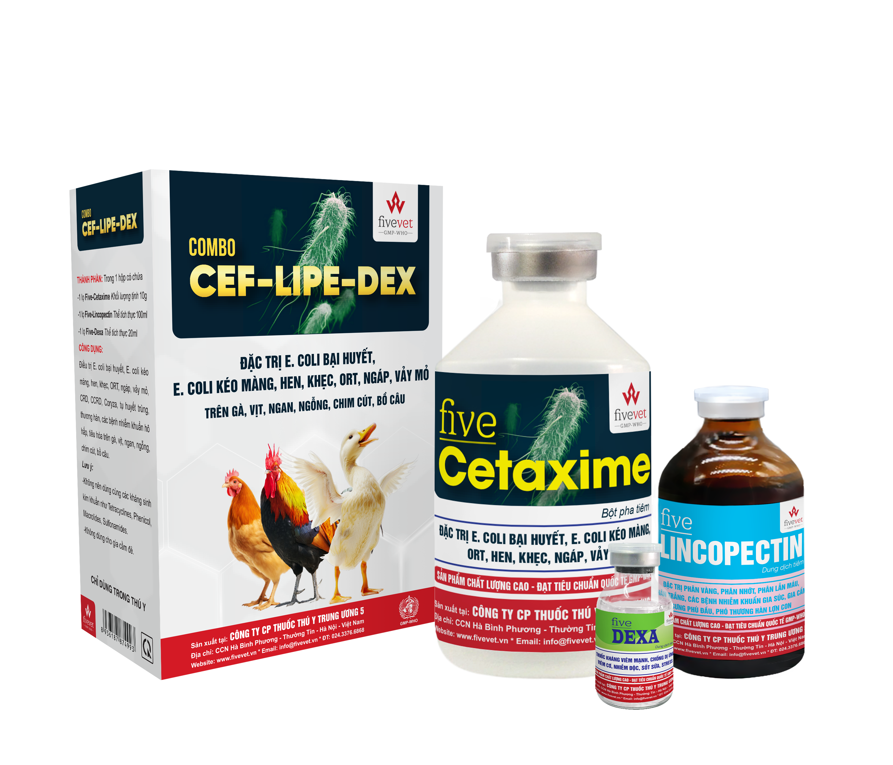LIỀU LƯỢNG VÀ CÁCH DÙNG: Rút lần lượt dung dịch trong 2 lọ Five-Lincopectin và Hado-Dexa vào lọ bột Five-Cetaxime. Lắc cho đến khi bột tan hoàn toàn. Lúc này có 125ml dung dịch đã pha. Sử dụng theo 1 trong 2 cách dưới đây: