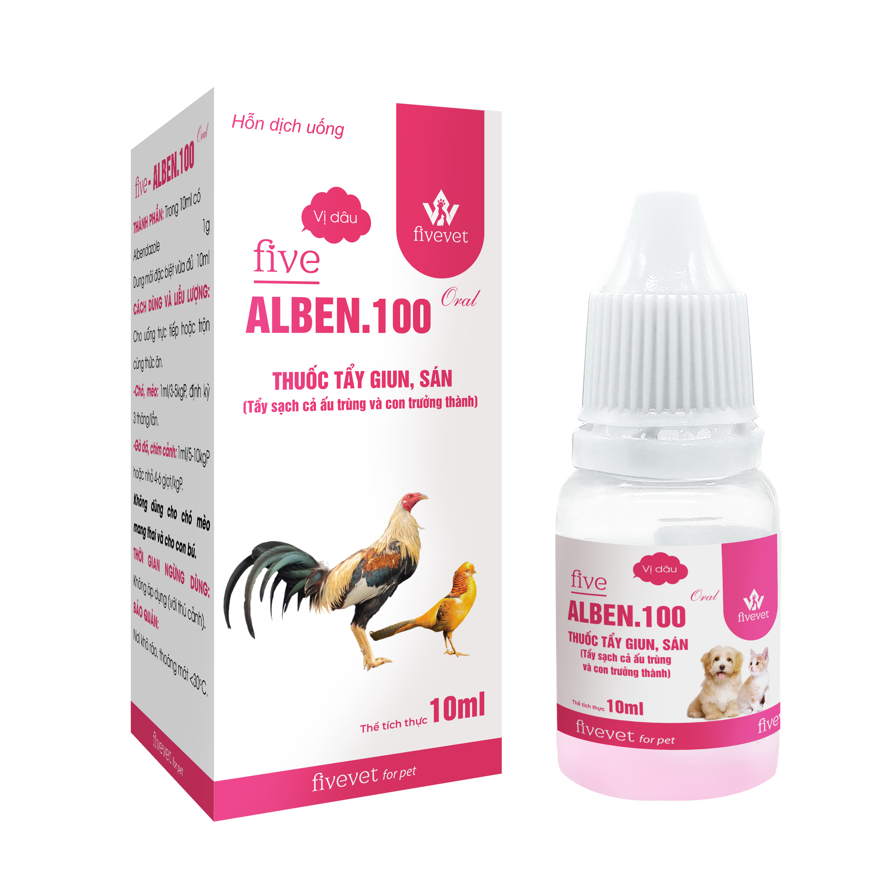Tẩy sạch các loại giun, sán như: Giun đũa chó (sán giãi), giun kim, giun móc, giun tóc, giun lươn, giun tròn ký sinh tiết niệu, giun phổi chó, giun nốt ở khí quản và phế quản chó, các loại sán như sán hạt dưa, sán dây, sán lá, sán lá phổi, trùng roi ký sinh đường ruột Giardia spp ở chó, mèo, gà đá, chim cảnh.