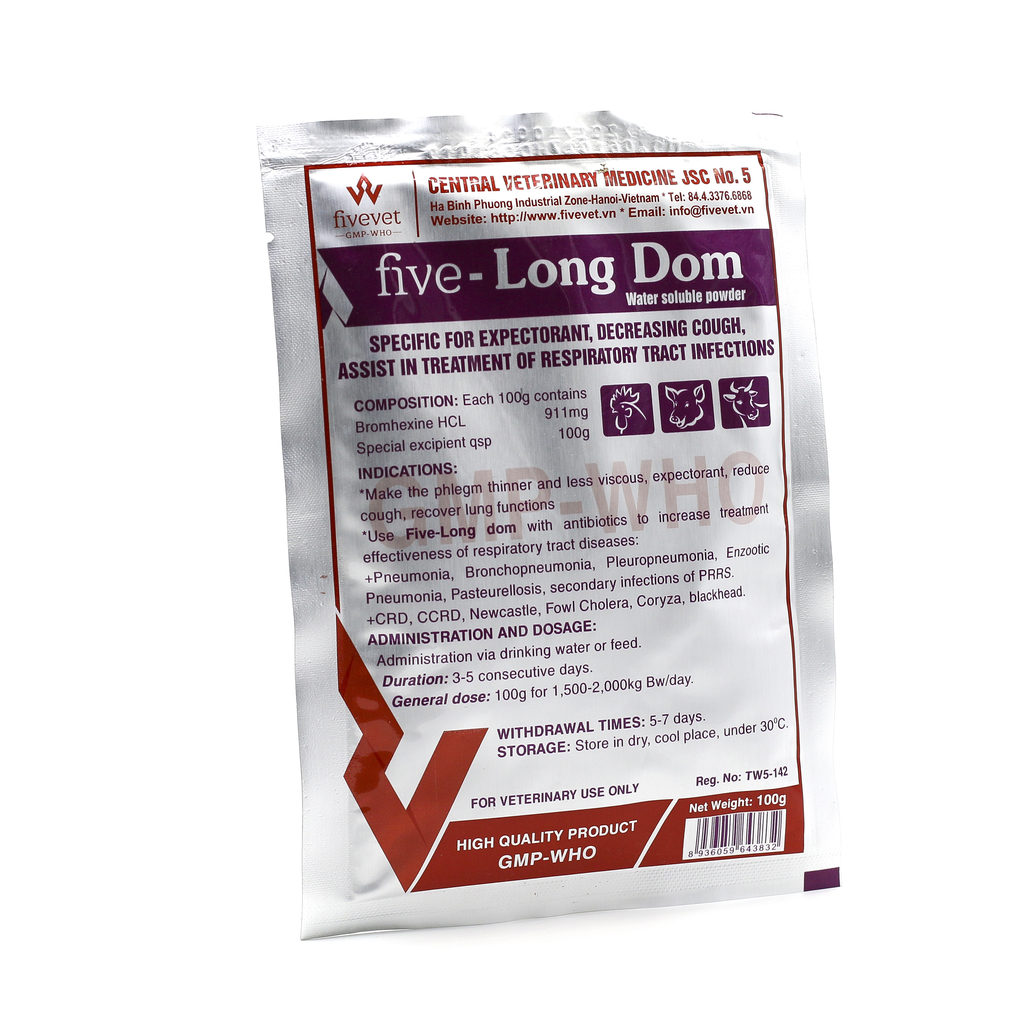 - Dùng Five-Long Đờm kết hợp với kháng sinh để điều trị bệnh nhiễm khuẩn, thuốc làm tăng khả năng hấp thu kháng sinh, tăng hiệu lực, hiệu quả của thuốc đối với các bệnh đường hô hấp như:
